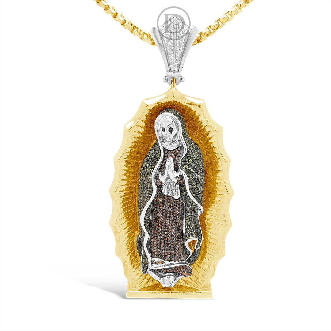 Green & Red Diamond Pendant 4.25 CTW Round Cut 14K Yellow Gold