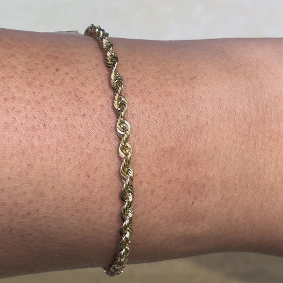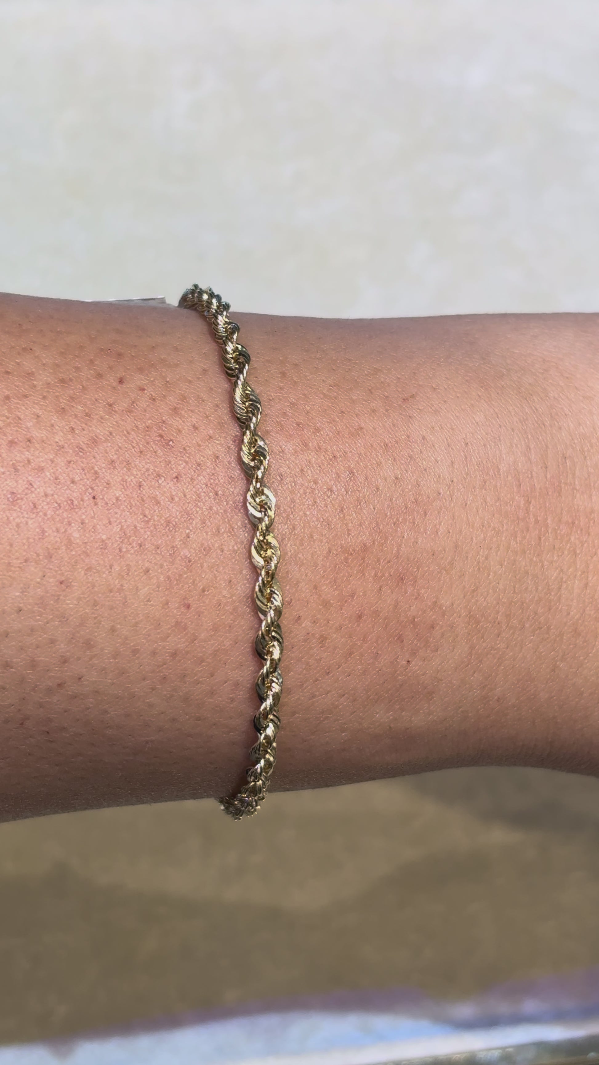 10K 3MM HOLLOW ROPE BRACELET CRAFTED IN YELLOW GOLD, FEATURING A CLASSIC TWISTED ROPE DESIGN WITH A BOLD APPERANCE. PERFECT FOR EVERYDAY WEAR, IT OFFERS A BALANCE ON STYLE, DURABILITY AND COMFORT. FINISHED WITH A SECURE CLASP.