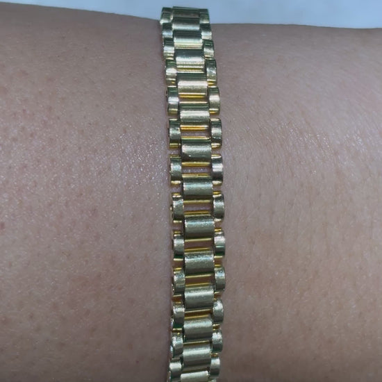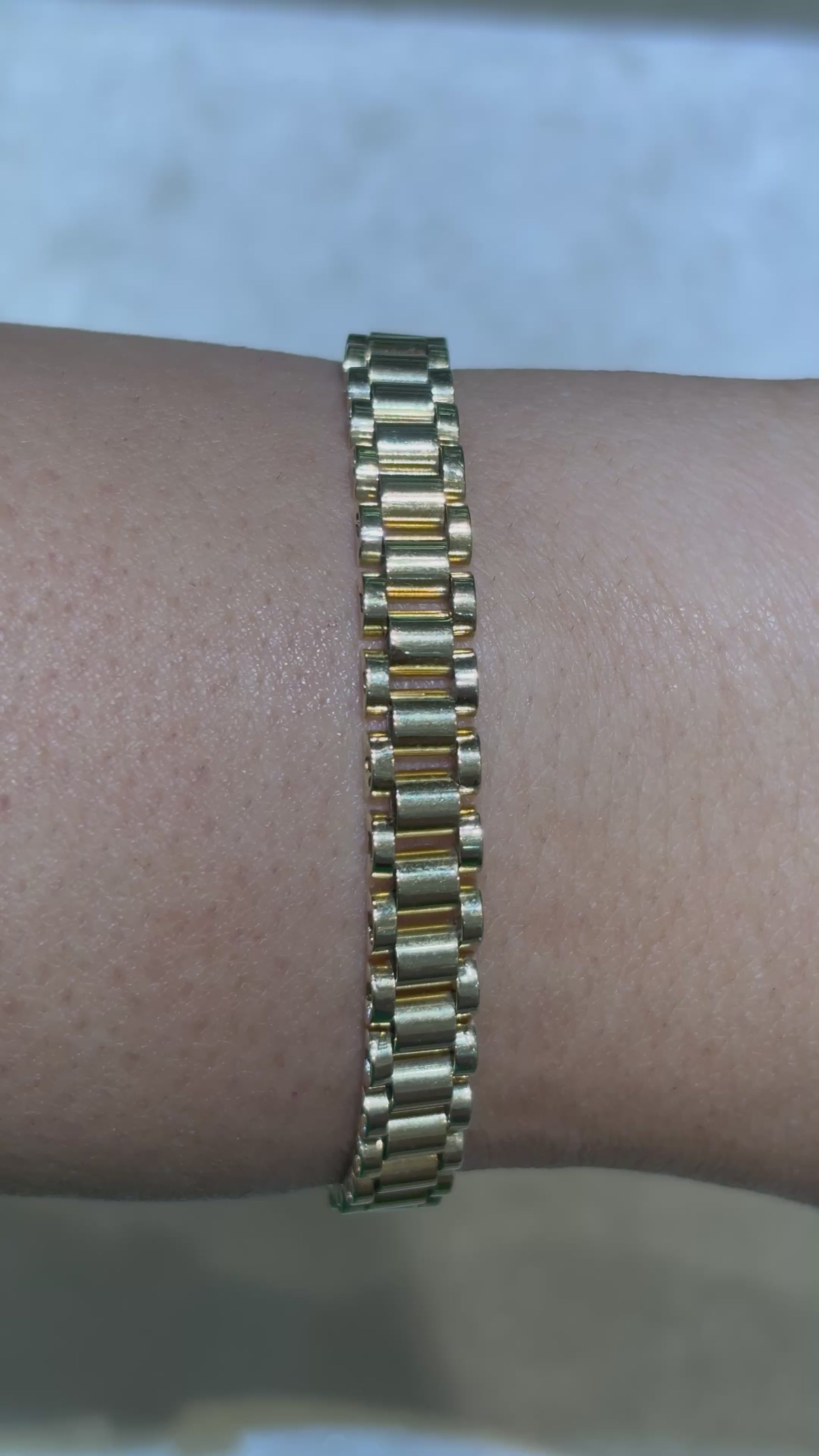 10K 7MM gold bracelet featuring a classic presidential link design in yellow gold. Crafted with a high-polish finish, this solid gold bracelet offers timeless elegance and durability, perfect for everyday wear or formal occasions.
