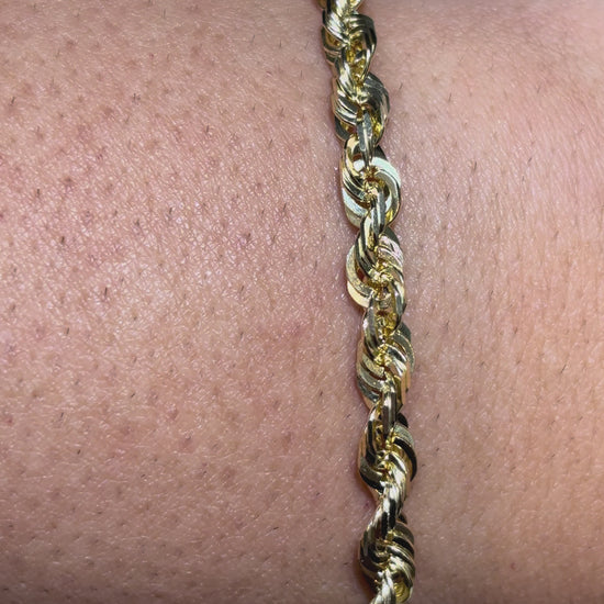 10K 4MM SOLID GOLD ROPE BRACELET IS IN YELLOW GOLD. IDEAL FOR EVERYDAY WEAR OR LAYERING, IT OFFERS A BOLD YET REFINED LOOK.
