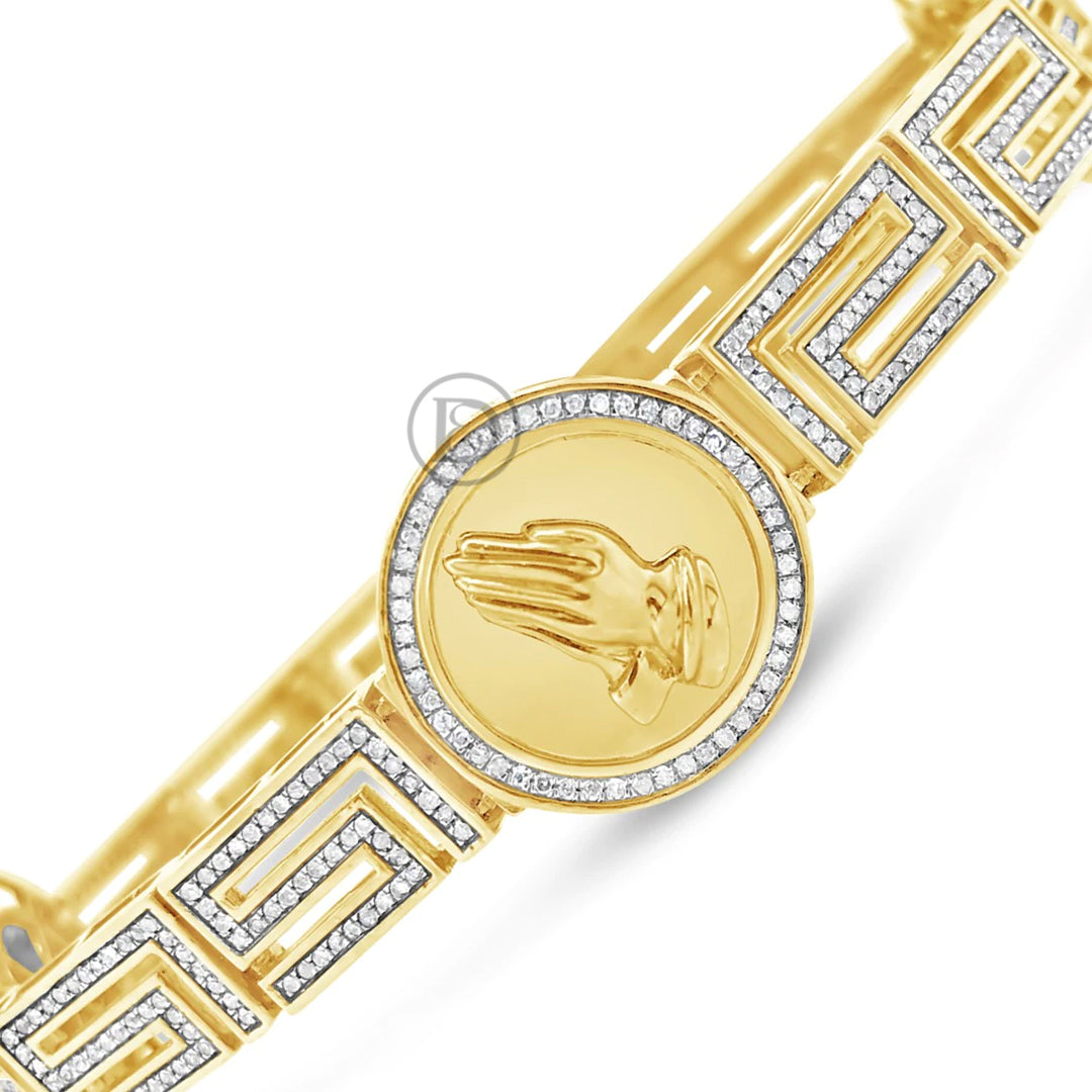 10K Solid Yellow Gold 1.44CT tw Round Cut Diamond Praying Hands Bracelet