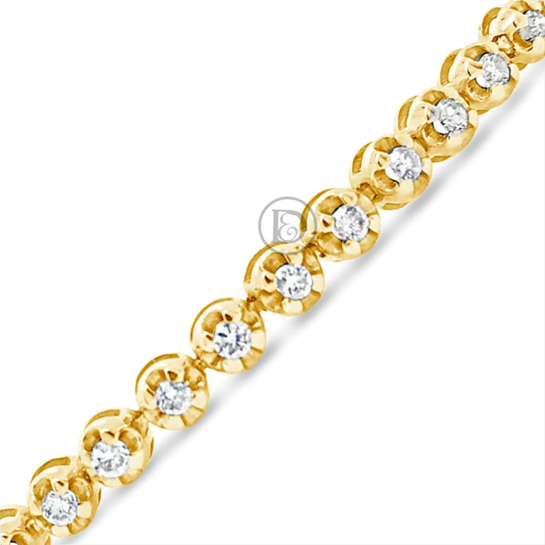 10K Solid Yellow Gold 1.59CT tw Round Cut Diamond Tennis 3.7mm Bracelet