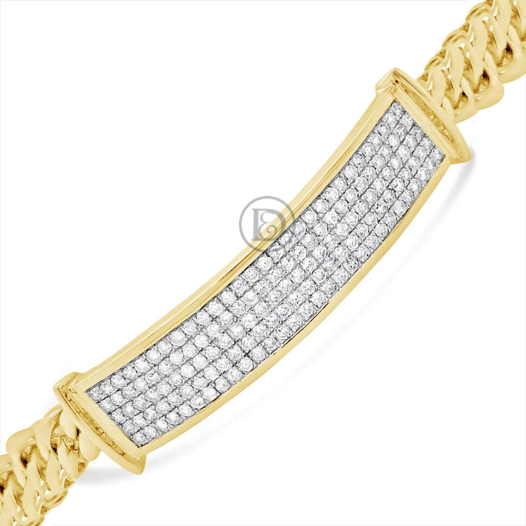 10K Solid Yellow Gold 2.80CT tw Round Cut Cuban Link Diamond ID Bracelet