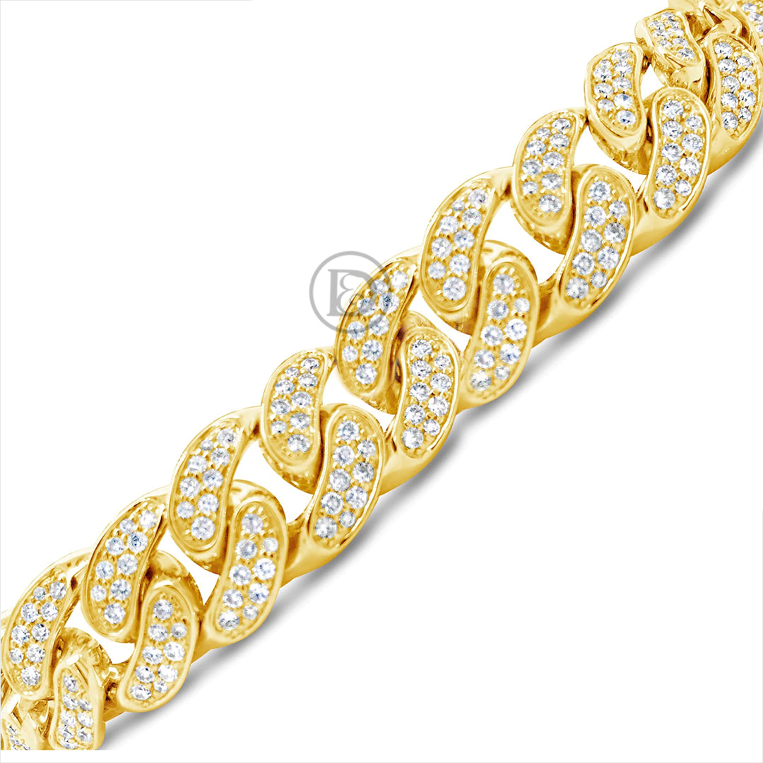 10K Solid Yellow Gold 9.10CT tw Round Cut Diamond 15mm Bracelet