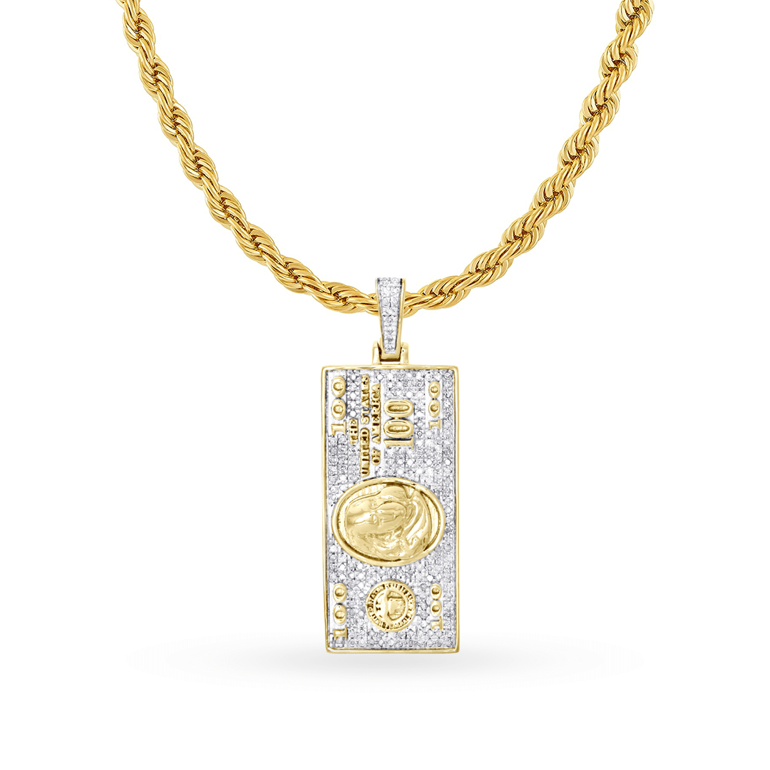 10K Yellow Gold $100 Bill Pendant With 1.00CT Diamonds