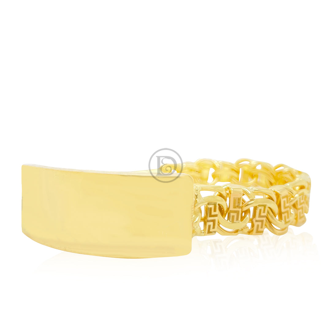 10K Yellow Gold Chino Link Personalize ID Name Bracelet with Greek Key