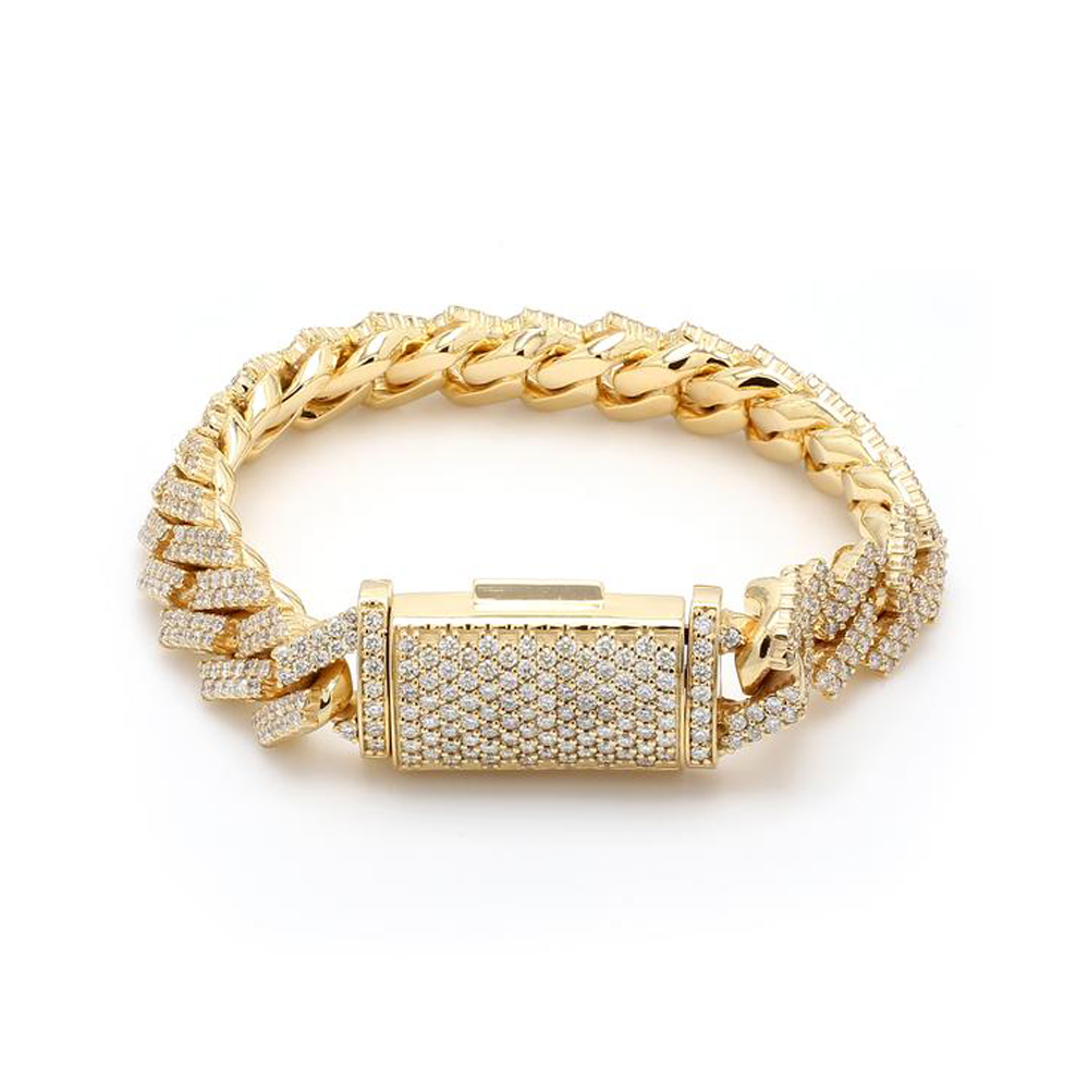 10K Yellow Gold Men's Cuban Bracelet With 6.30CT Diamonds