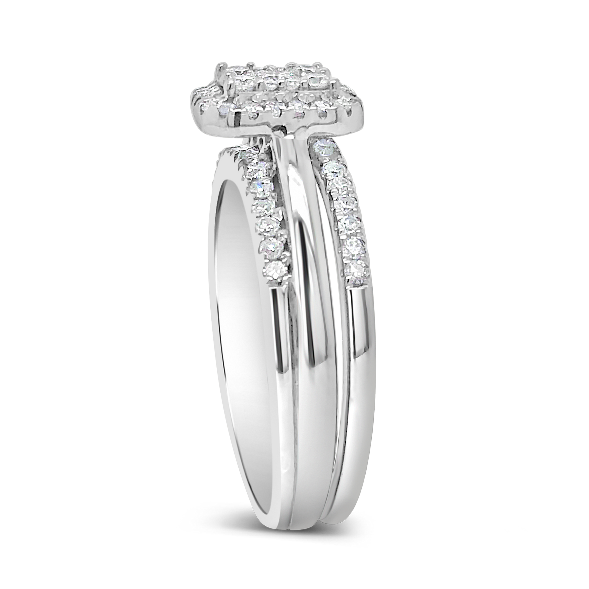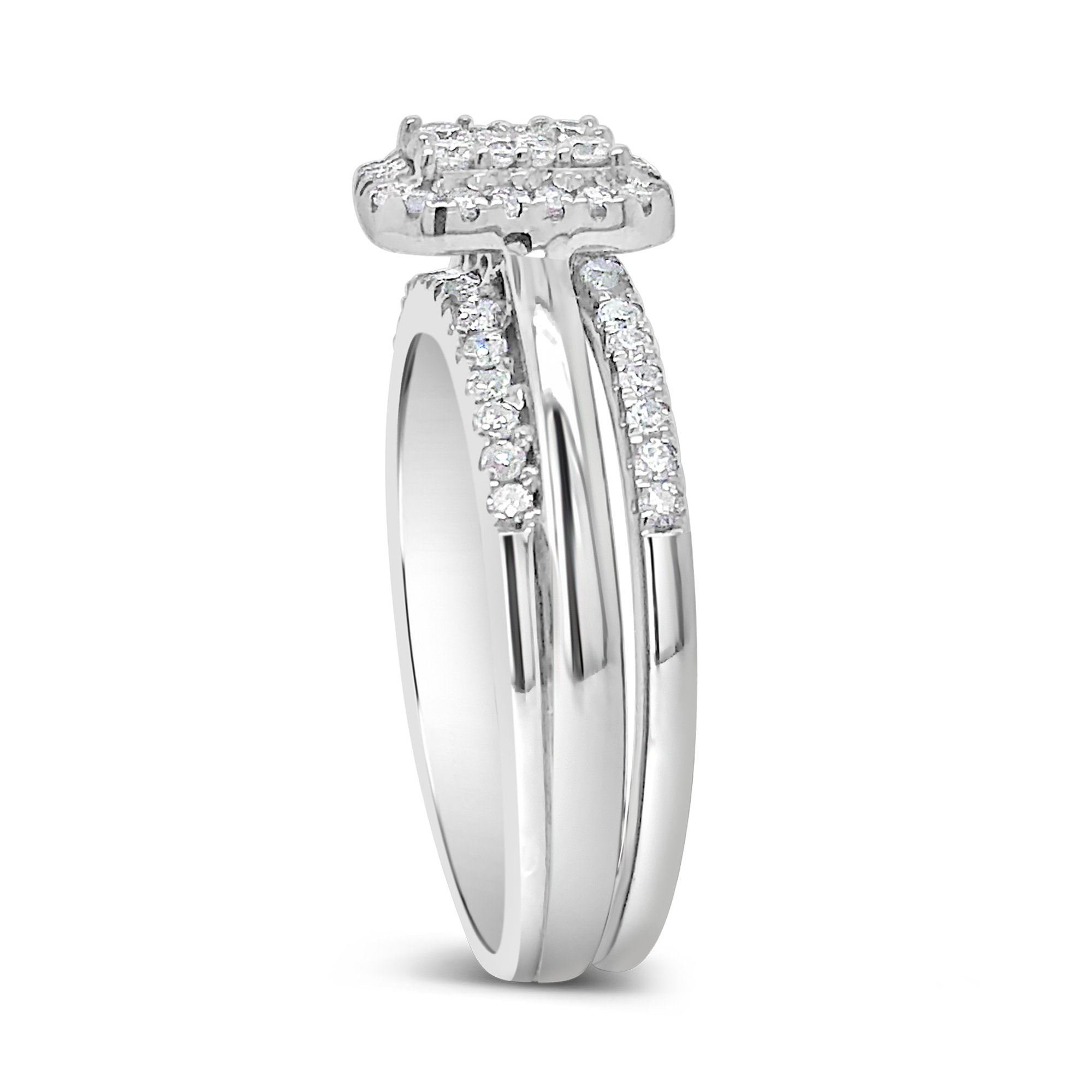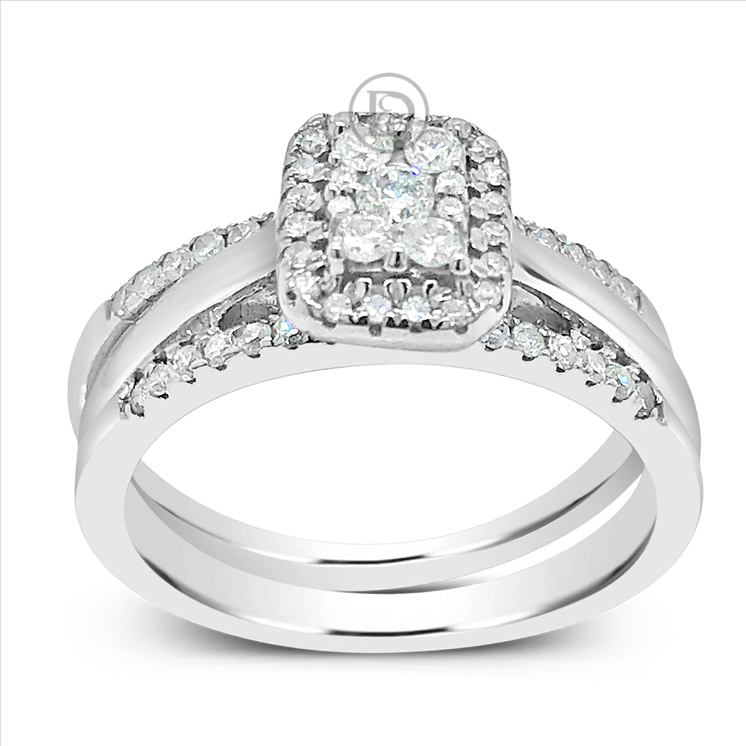 3 Band Diamond Halo Engagement Ring .55 CTW Round Cut 14K White Gold