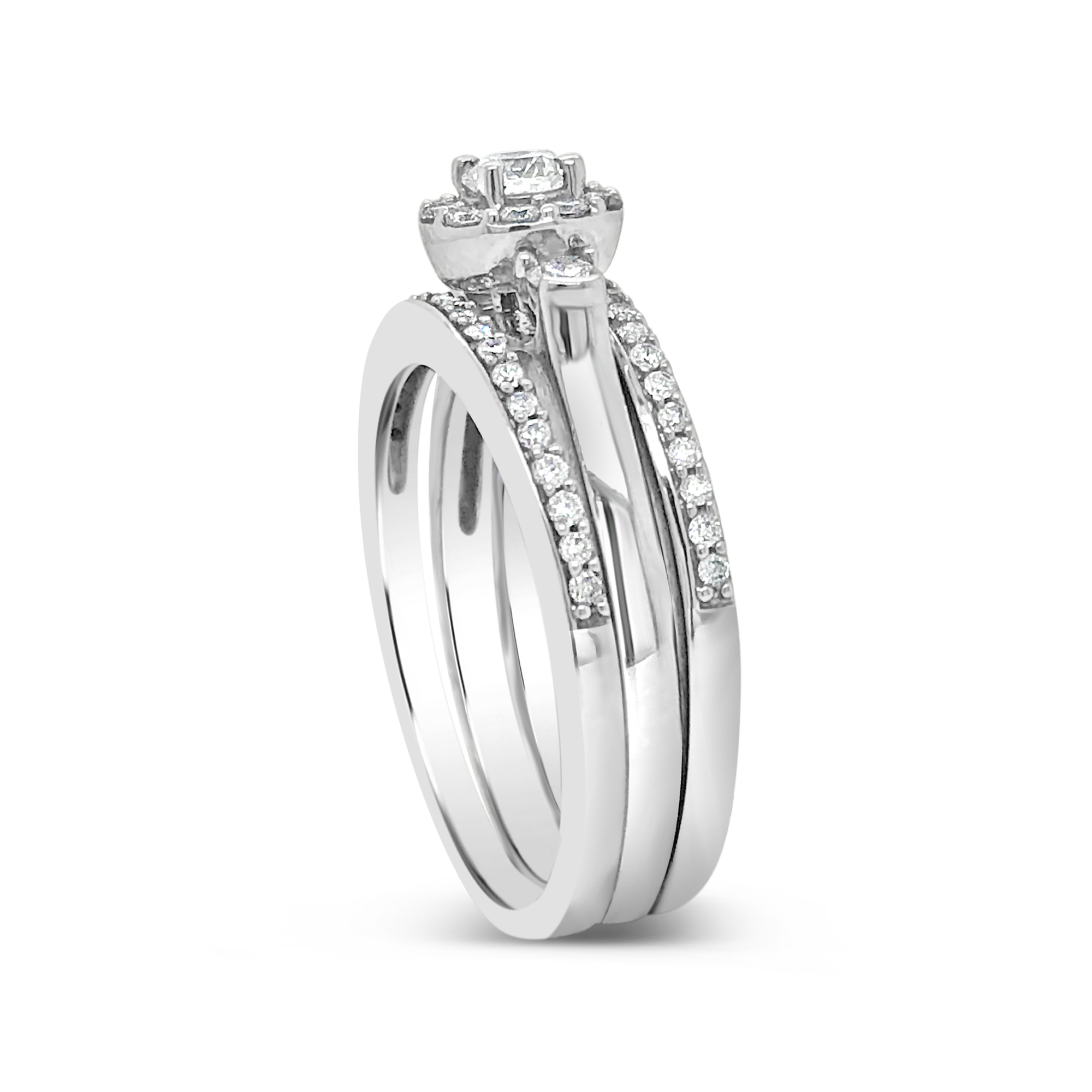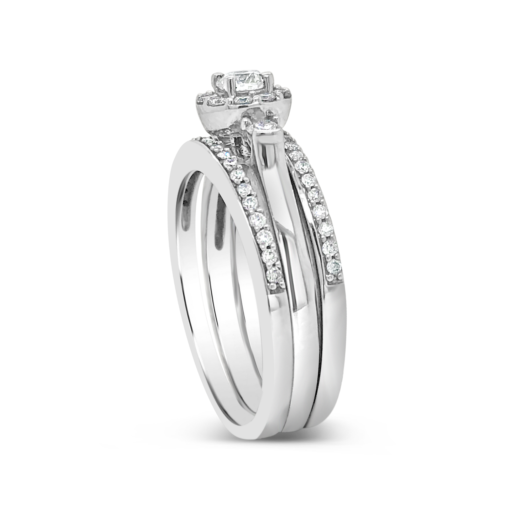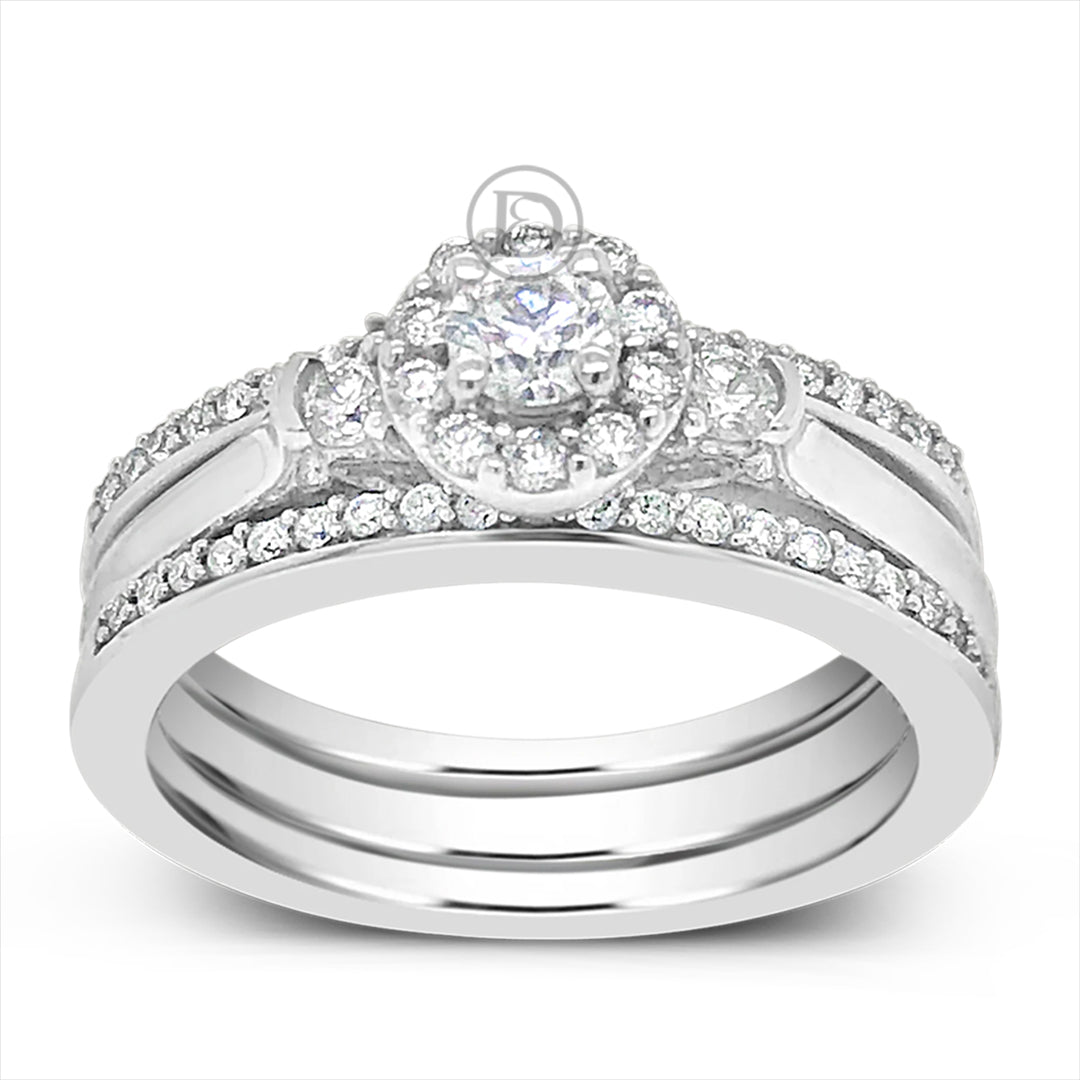 3 Piece Diamond Halo Engagement Ring .62 CTW Round Cut 14K White Gold