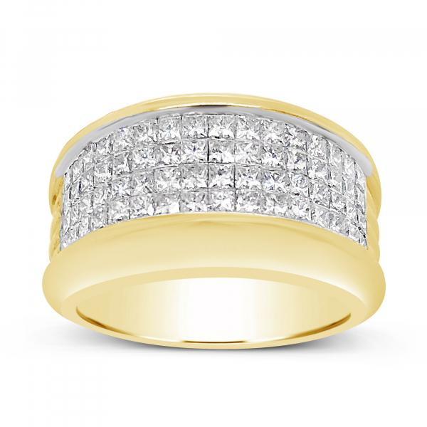 Enjoy the richness of this beautiful Diamond Band, which has 1.50 CTW of Princess Cut diamonds set in 14K Yellow Gold. The princess cut diamonds are channel set in a stylish and modern design, producing a smooth and consistent effect. The diamonds in this ring have been precisely chosen and placed to achieve maximum sparkle and brightness, making it a true statement piece.