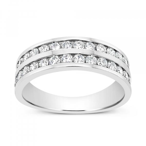 Adorn your finger with this magnificent 1 CTW round-cut diamond band, crafted from luxurious 14K white gold. With its sparkling array of 11 diamonds set in a prong setting, this band is sure to catch the eye and turn heads. Whether worn alone or paired with other bands or rings, this diamond band is a timeless and versatile addition to any collection. This band can be worn on its own or stacked with other bands to create a unique and personalized look. Perfect as a gift for a loved one or as a special treat for yourself, this diamond band is sure to be cherished for years to come.