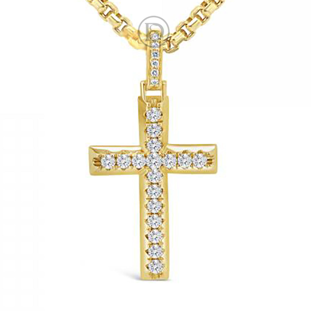 Diamond Cross Pendant 1.60 CTW Round Cut 10K Yellow Gold