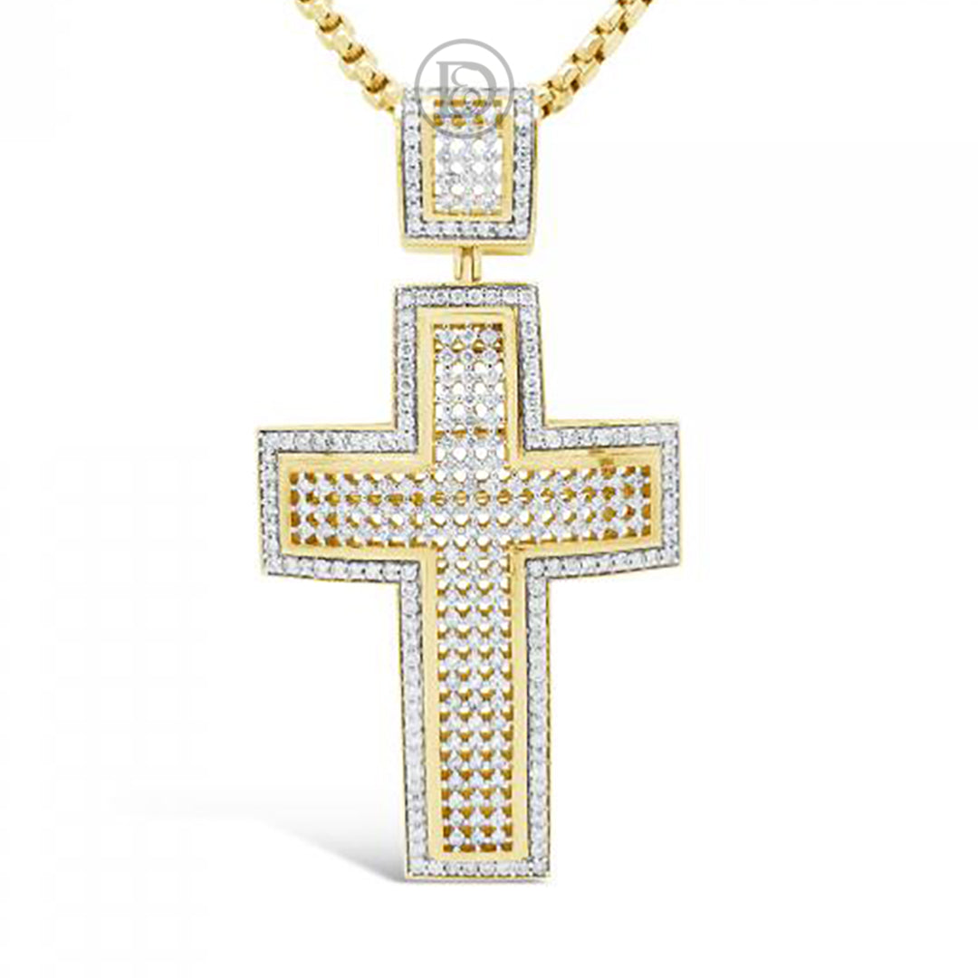 Diamond Cross Pendant 1.60 CTW Round Cut 10K Yellow Gold