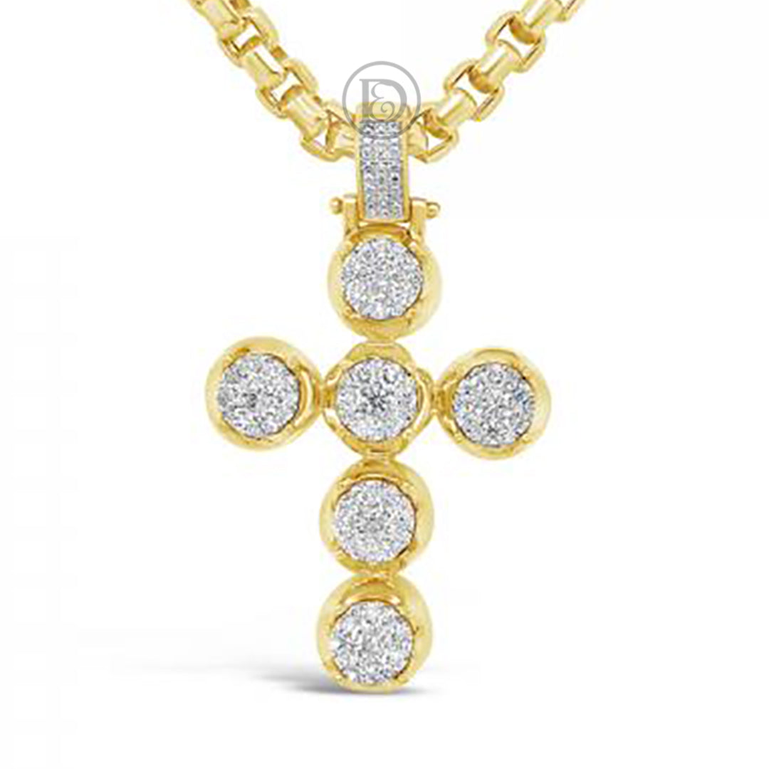 Diamond Cross Pendant 3.02 CTW Round Cut 10K Yellow Gold