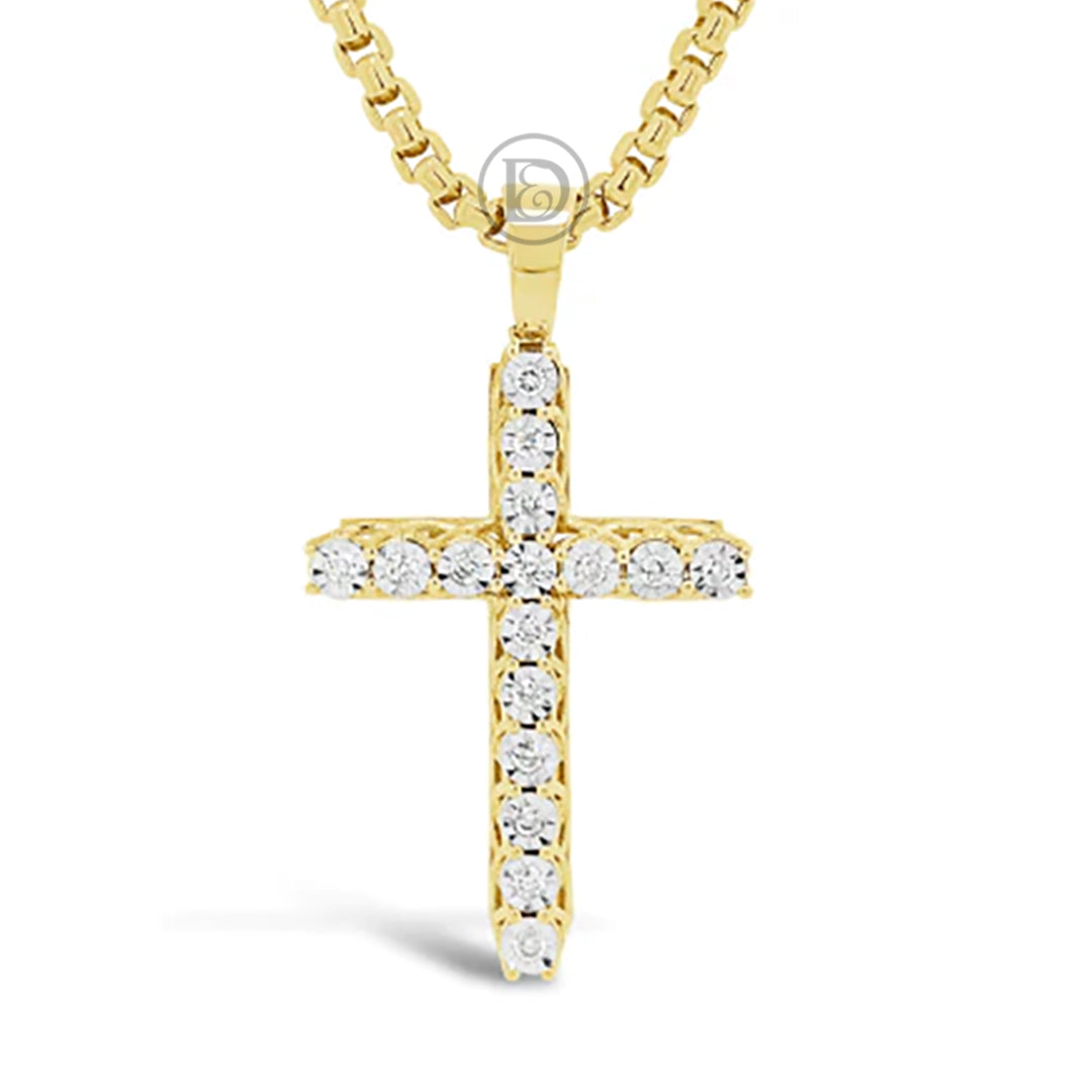 Diamond Cross Pendant .73 CTW Round Cut 10K Yellow Gold
