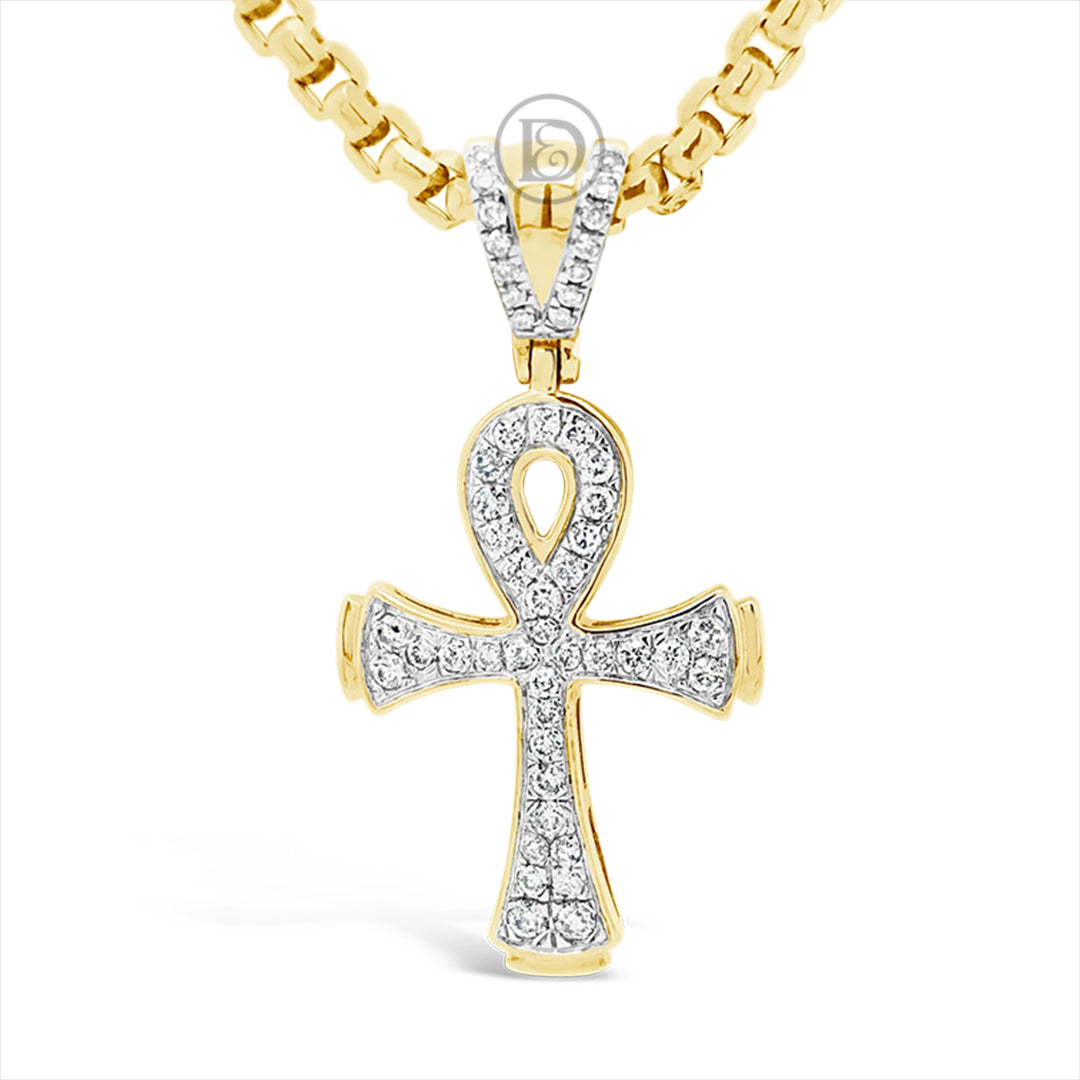 Diamond Cross Pendant .75 CTW Round Cut 10K Yellow Gold