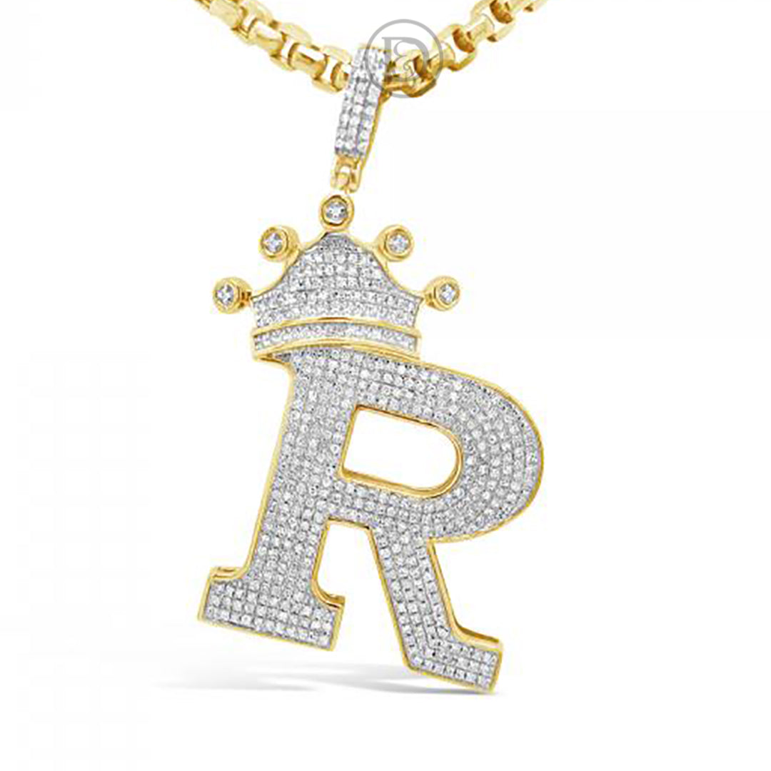 Diamond "Crown R" Pendant .65 CTW Round Cut 10K Yellow Gold