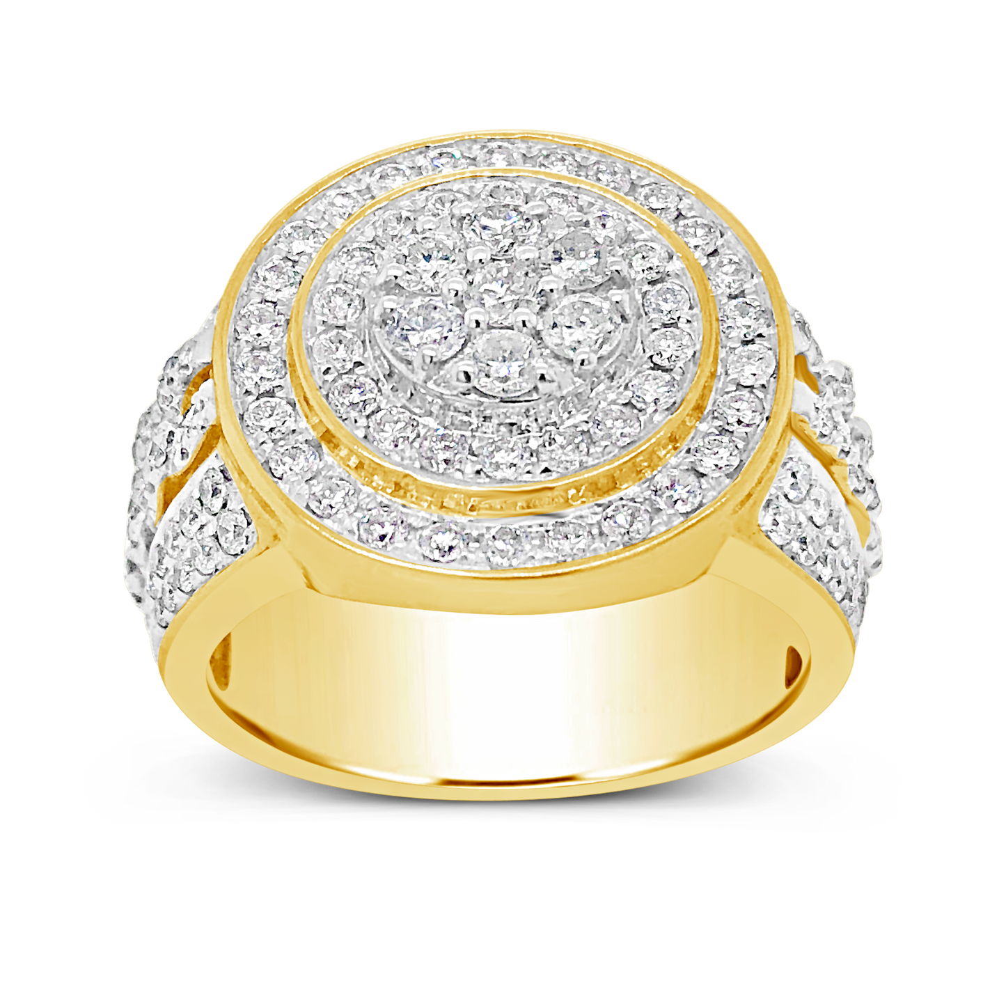 Diamond Cuban Link Ring 1.90 CTW Round Cut 10K Yellow Gold