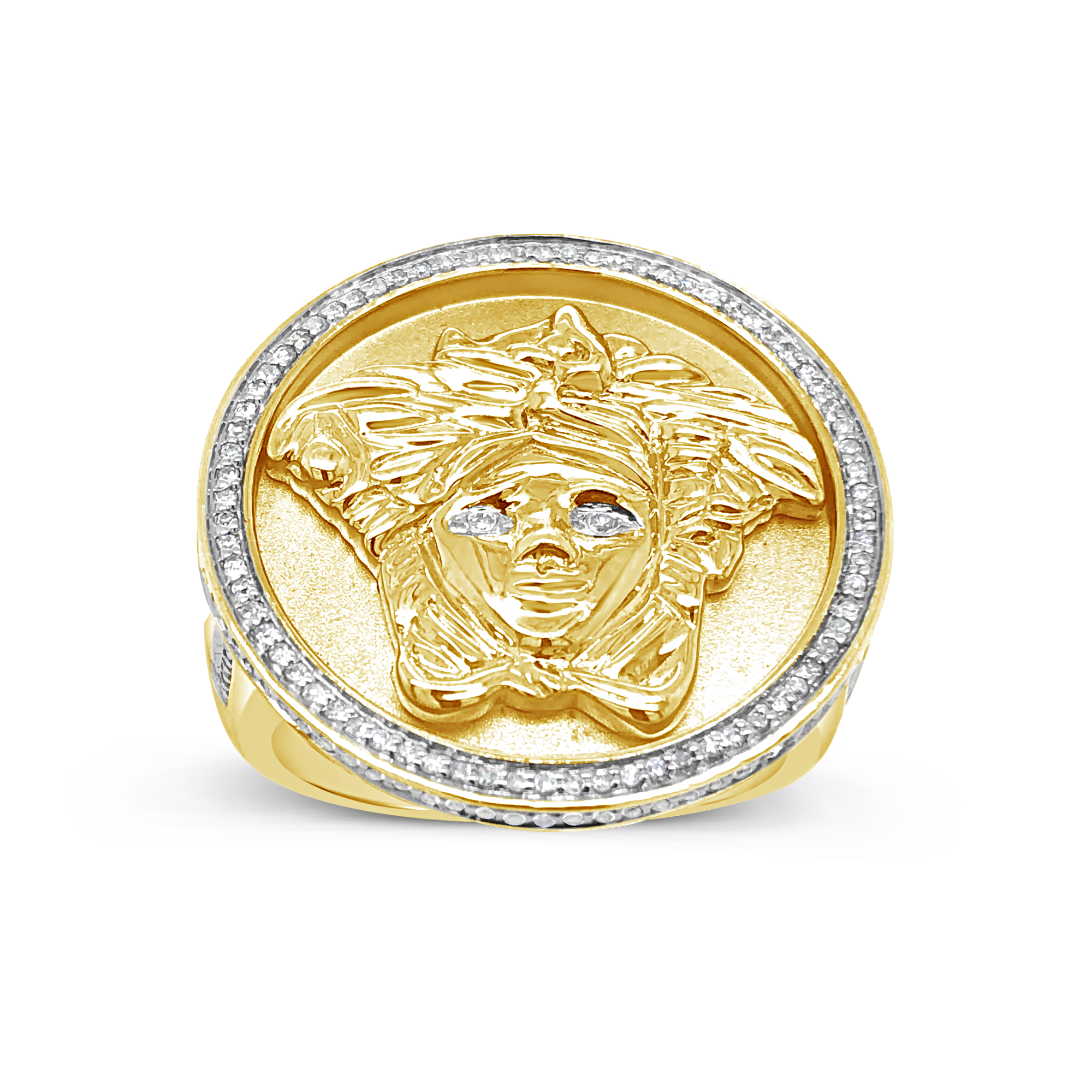 Diamond Designer Medusa Ring .53 CTW Round Cut 10K Yellow Gold
