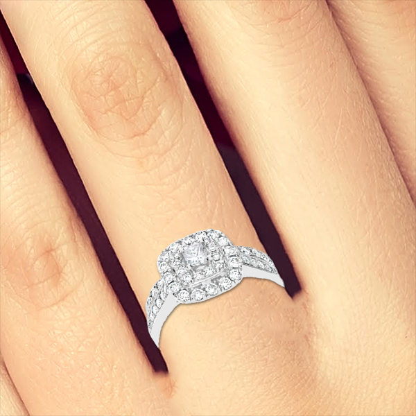 Diamond Engagement Ring 1 CTW Princess W/ Round Cut 14K White Gold