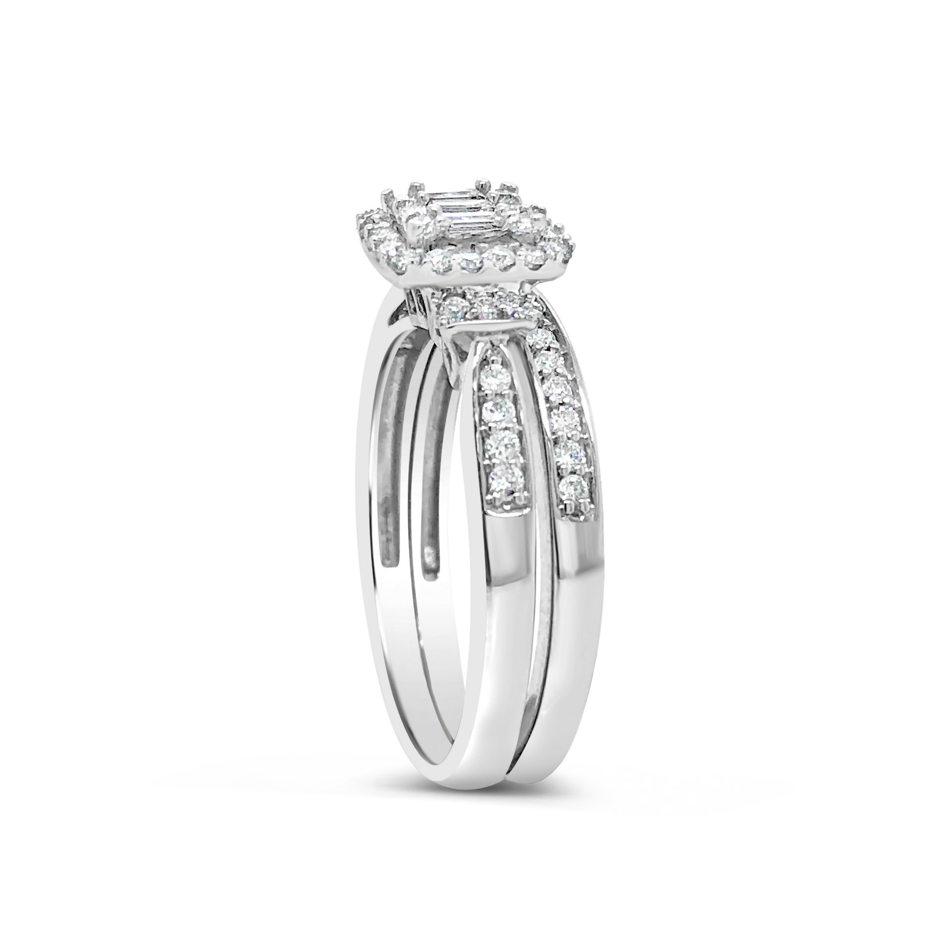 Celebrate your love story with our Diamond Engagement Ring Bridal Set. This stunning set features .50-carat diamonds, elegantly set in high-quality 14K White Gold, to create a timeless and sophisticated look. The wedding band is expertly crafted with smaller diamonds that beautifully complement the engagement ring, creating a cohesive and seamless bridal set. Our Diamond Engagement Ring Bridal Set is perfect for the modern bride who appreciates a classic and elegant style. This set is not only a symbol of your love and commitment but also a precious heirloom that can be passed down for generations to come.