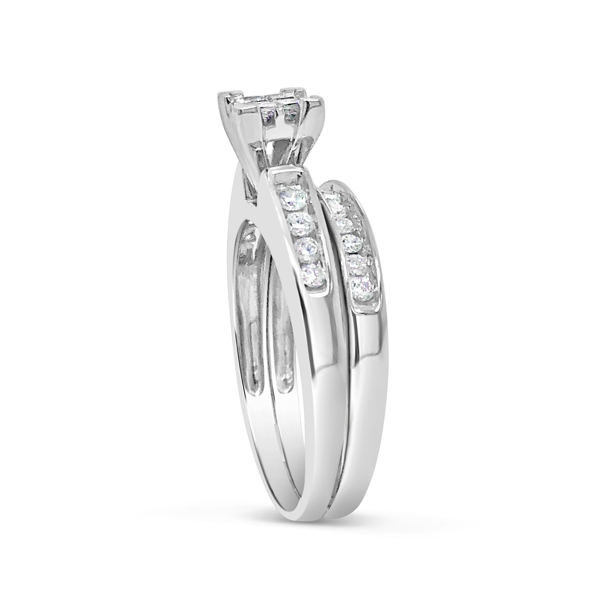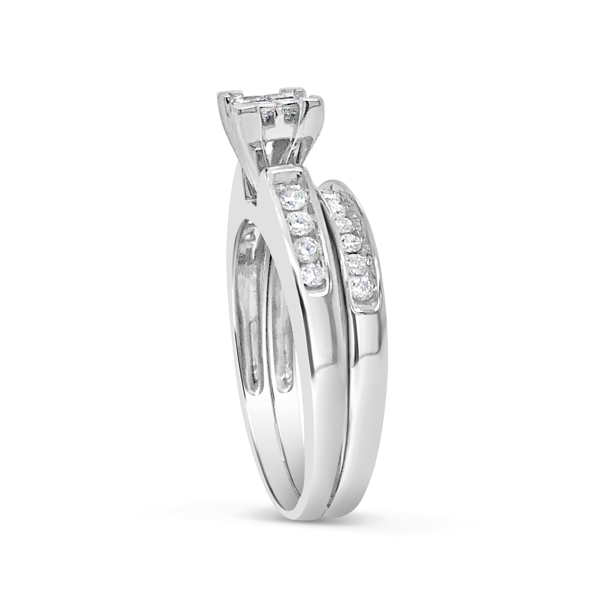 Make your proposal unforgettable with this breathtaking Diamond Engagement Ring. Crafted from premium 10K white gold, this ring features a .50-carat total weight of stunning princess and round-cut diamonds that sparkle and shine with every movement. The princess-cut diamonds at the center of the ring are truly mesmerizing, and the halo of round diamonds that surround it adds an extra layer of brilliance and sophistication. With its timeless design and exceptional craftsmanship, this Diamond Engagement Ring is sure to become a cherished family heirloom that will be passed down for generations to come.