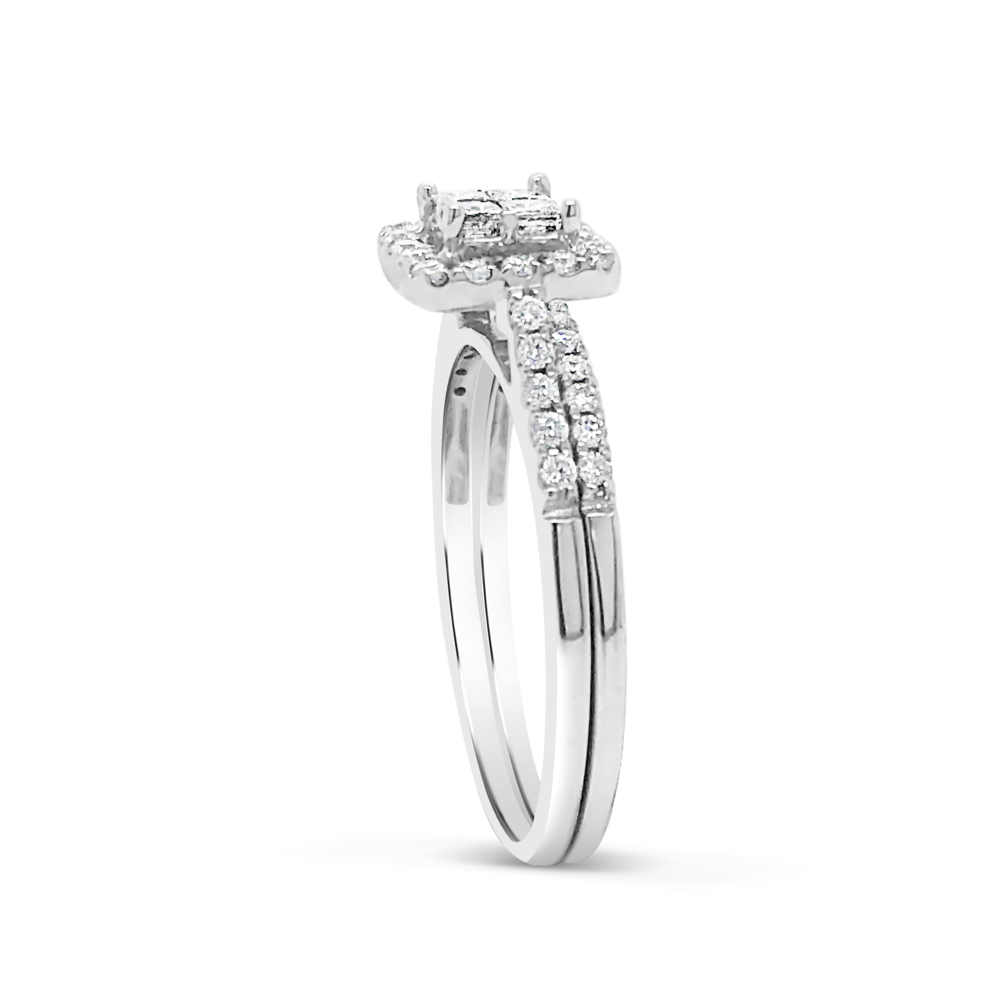 Capture the true essence of love with our Diamond Engagement Ring Bridal Set in 14K White Gold. Featuring .51 CTW diamonds, this ring radiates elegance, beauty, and grace. The band beautifully accentuates the sparkling diamond and elevates its already magnificent beauty. 14K white gold band adds the perfect touch of sophistication and modernity to this already breathtaking piece, making it a masterpiece to be treasured forever. Celebrate your love story and commit to a lifetime of happiness with the Diamond Engagement Ring Bridal Set.