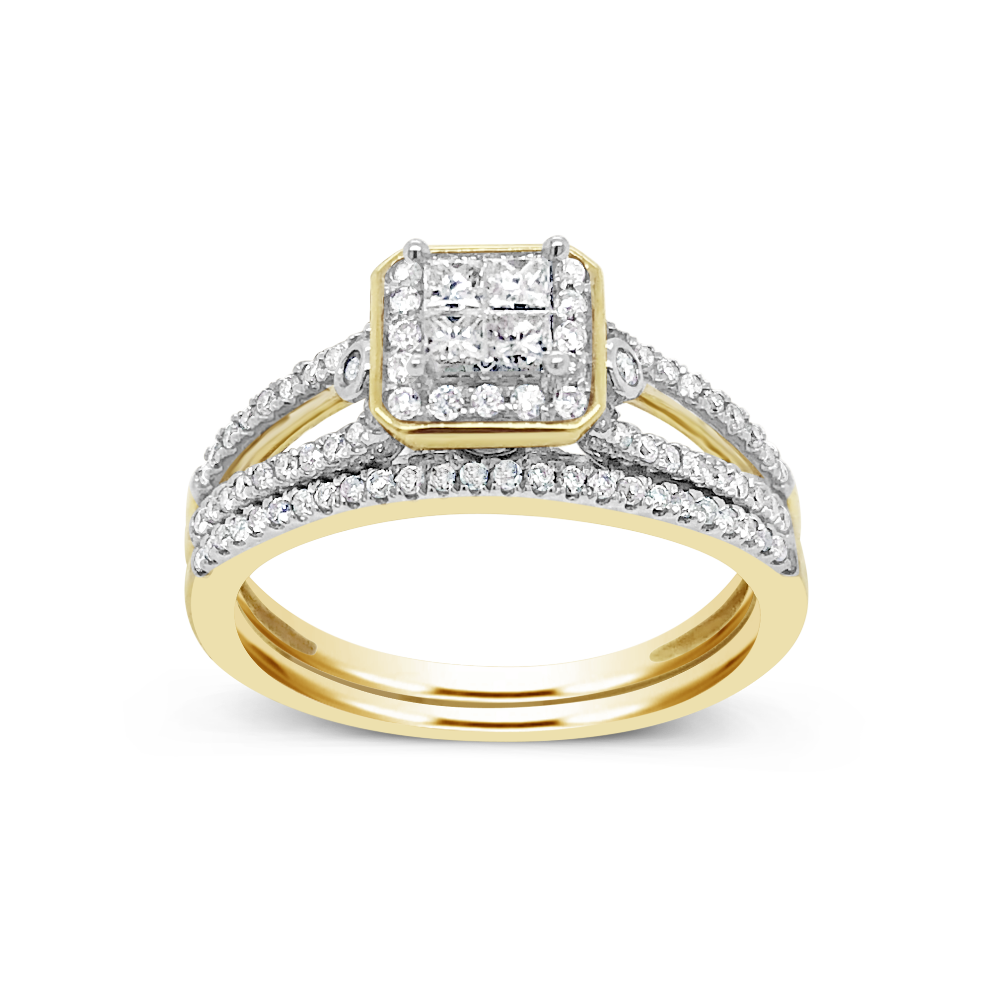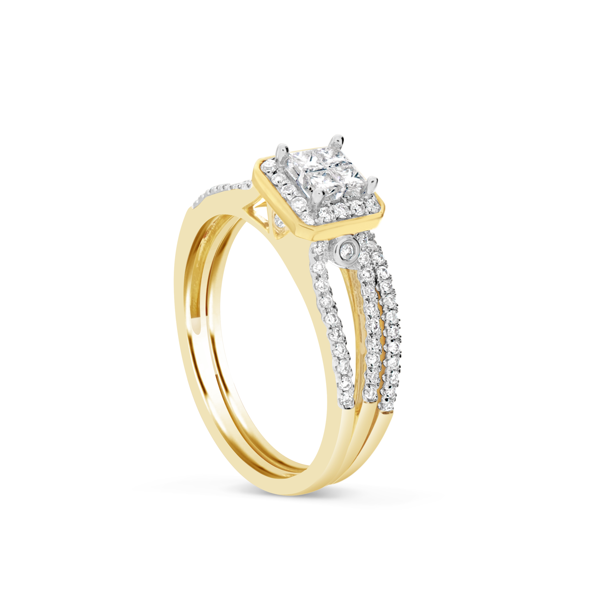 Embrace your love with this beautiful Diamond Engagement Ring. This ring is made of premium 14K yellow gold and boasts a stunning .52 carat total weight of princess and round cut diamonds that will steal your partner's breath away. The diamonds are skillfully placed in prongs to enhance their brightness and shine, and the 14K yellow gold band is designed to be comfortable to wear.