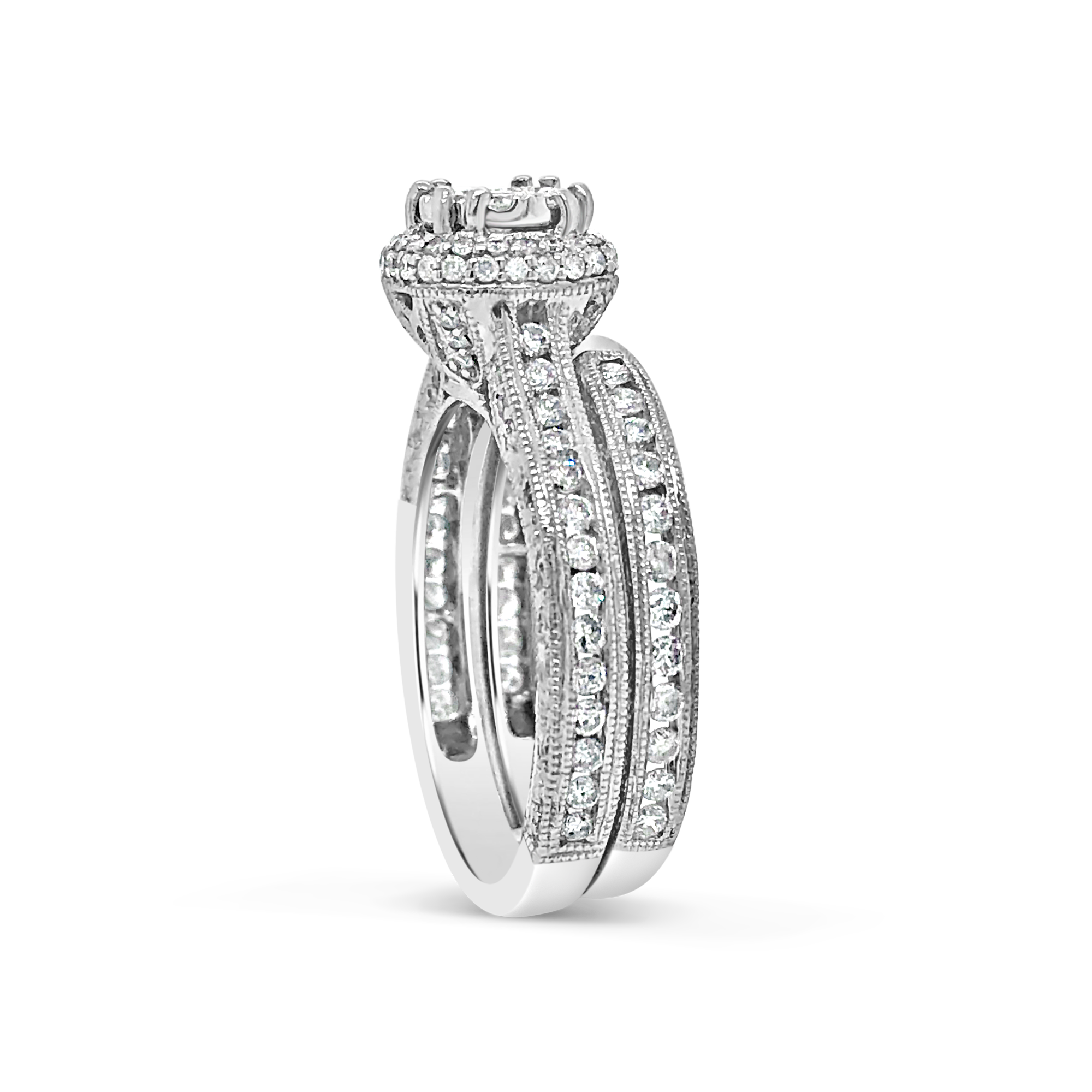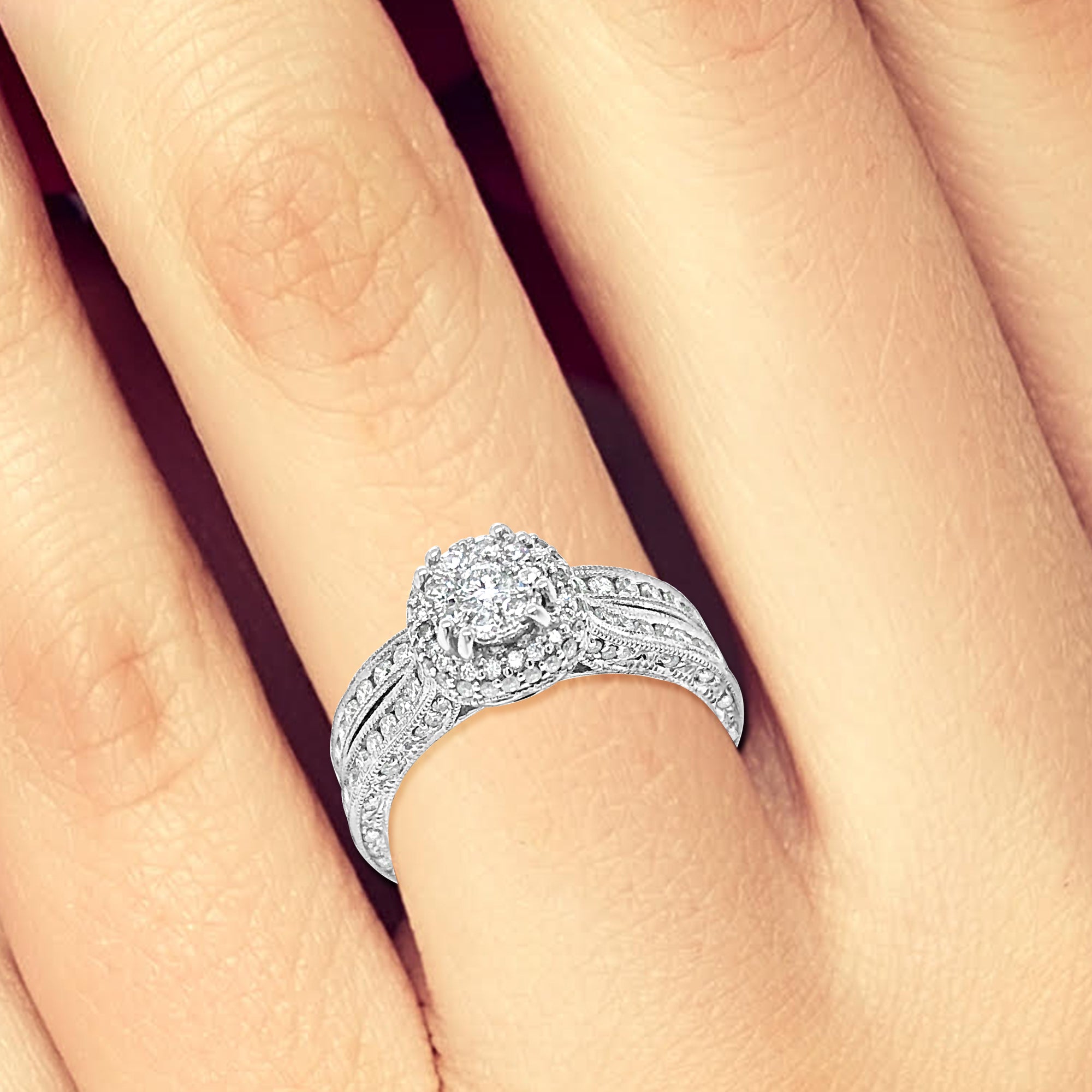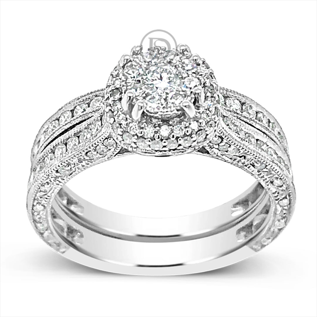 Diamond Halo Engagement Ring 1.10 CTW Round Cut 14K White Gold
