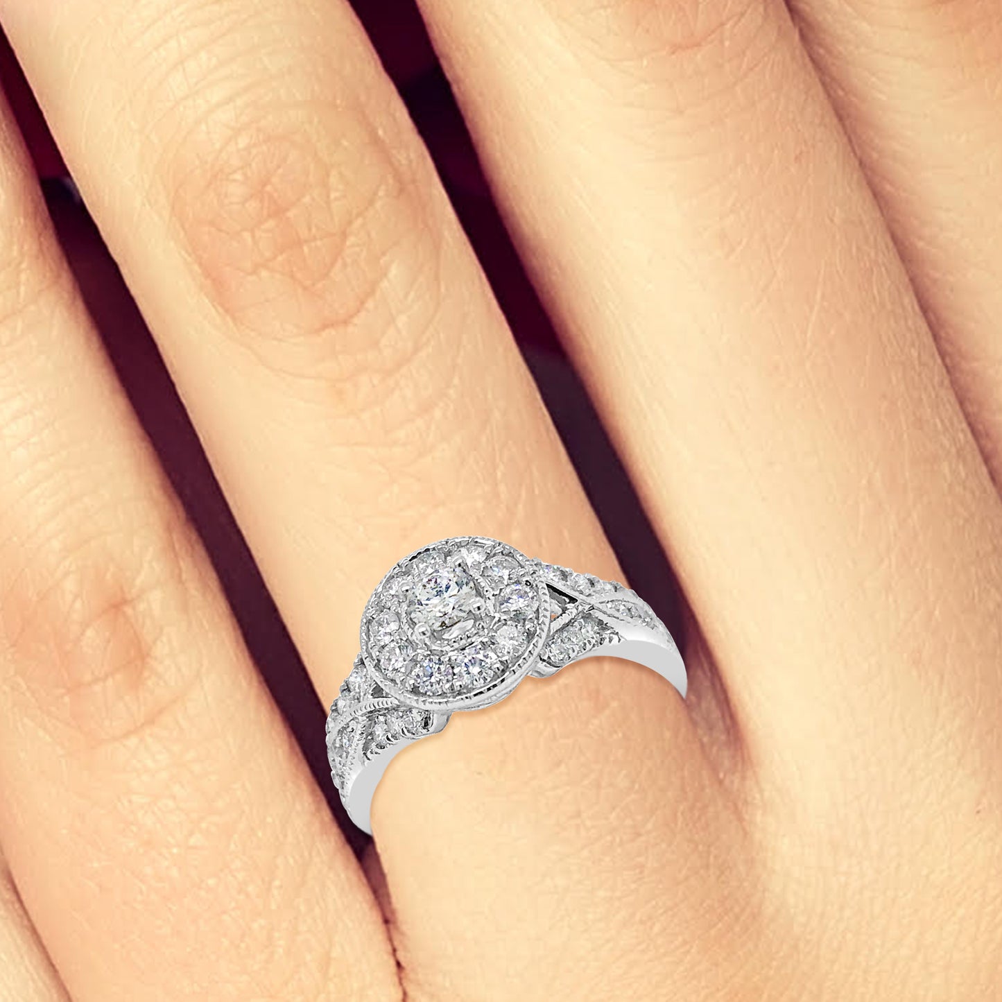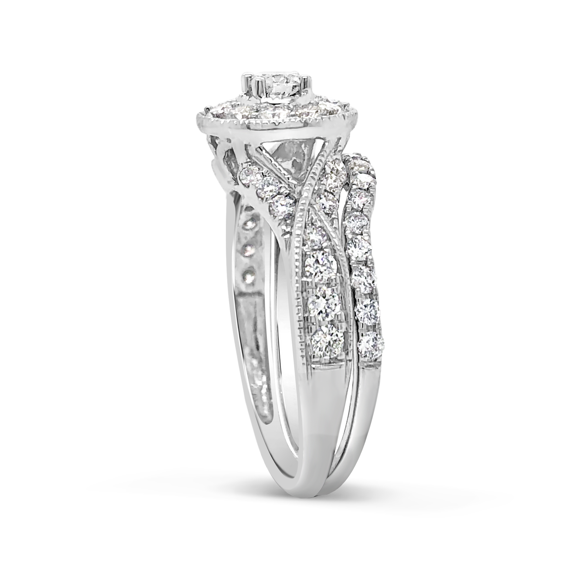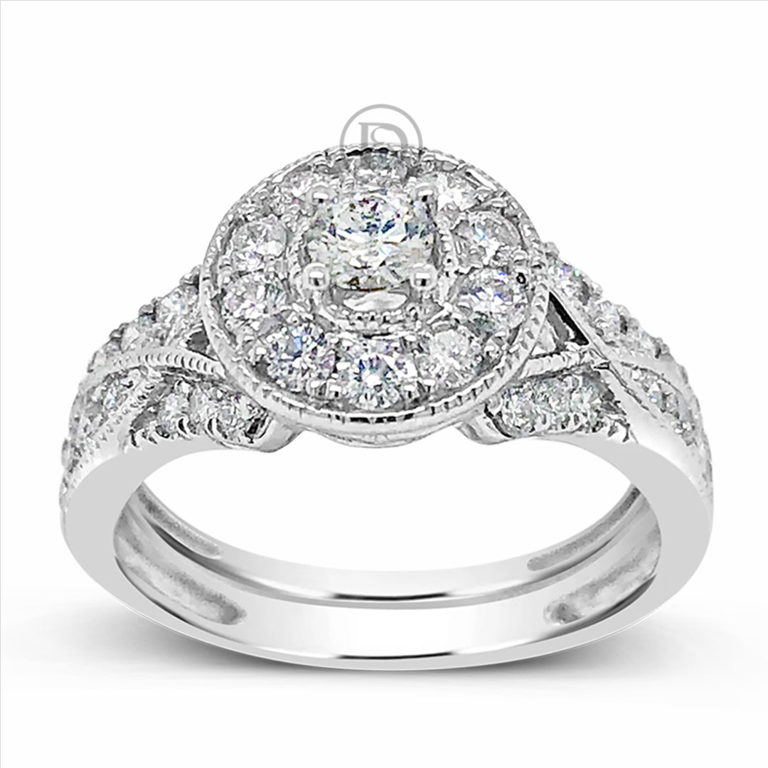 Diamond Halo Engagement Ring 1.20 CTW Round Cut 14K White Gold