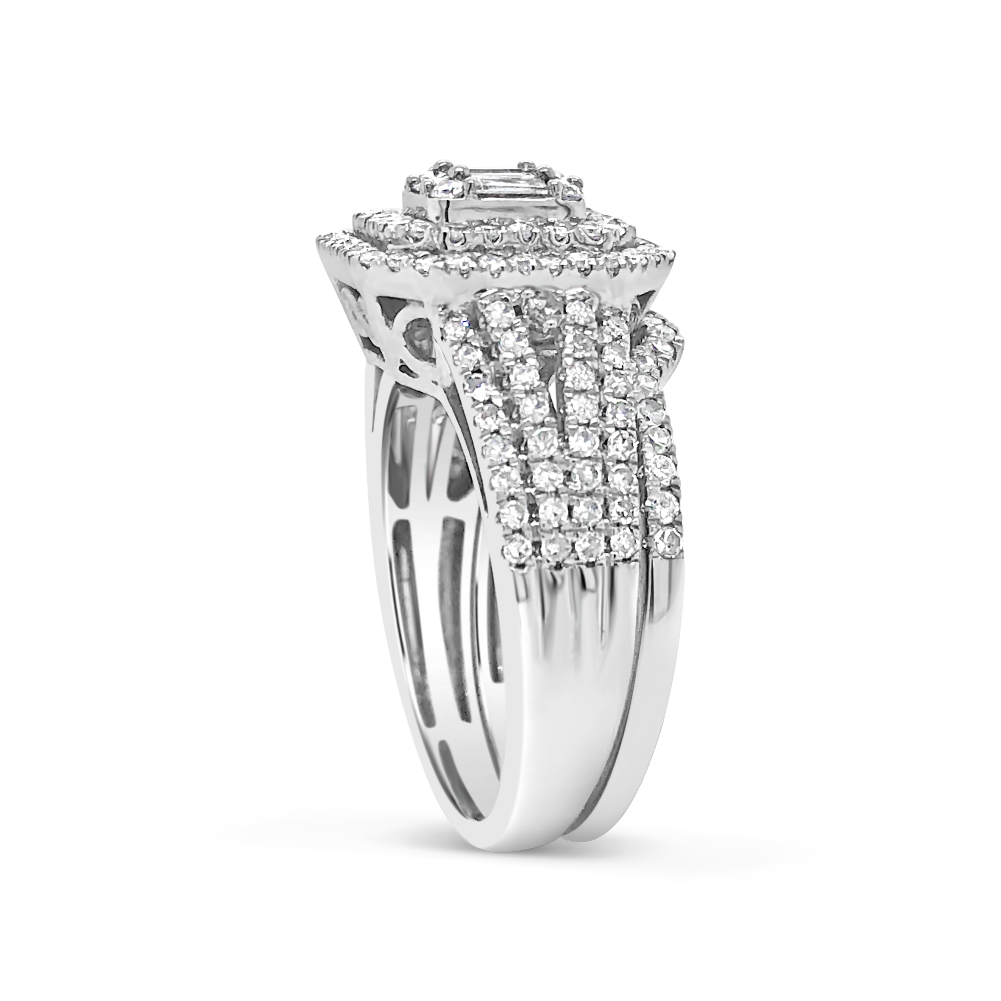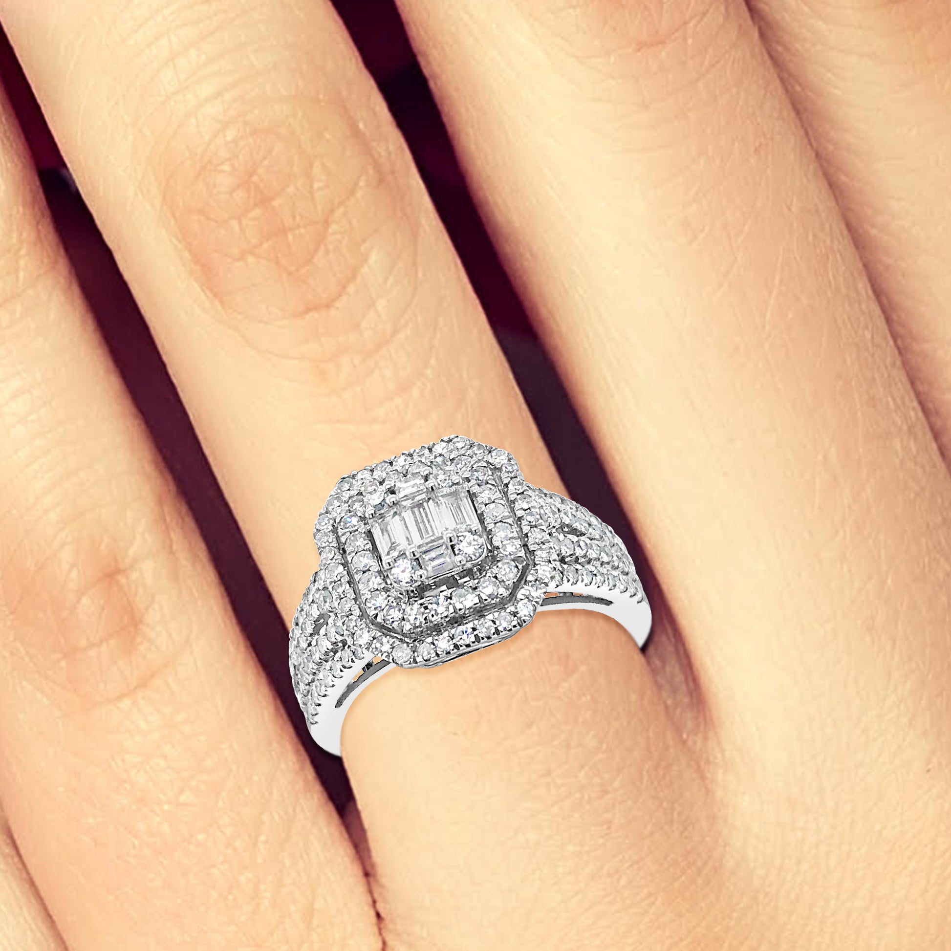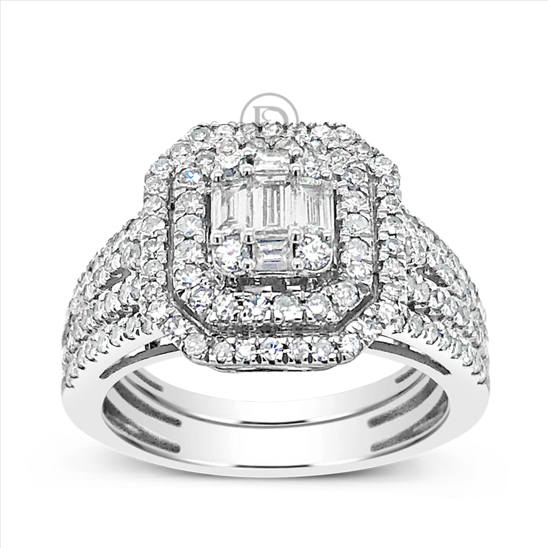 Diamond Halo Engagement Ring 1.25 CTW Baguettes w/ Round Cut 14K White Gold