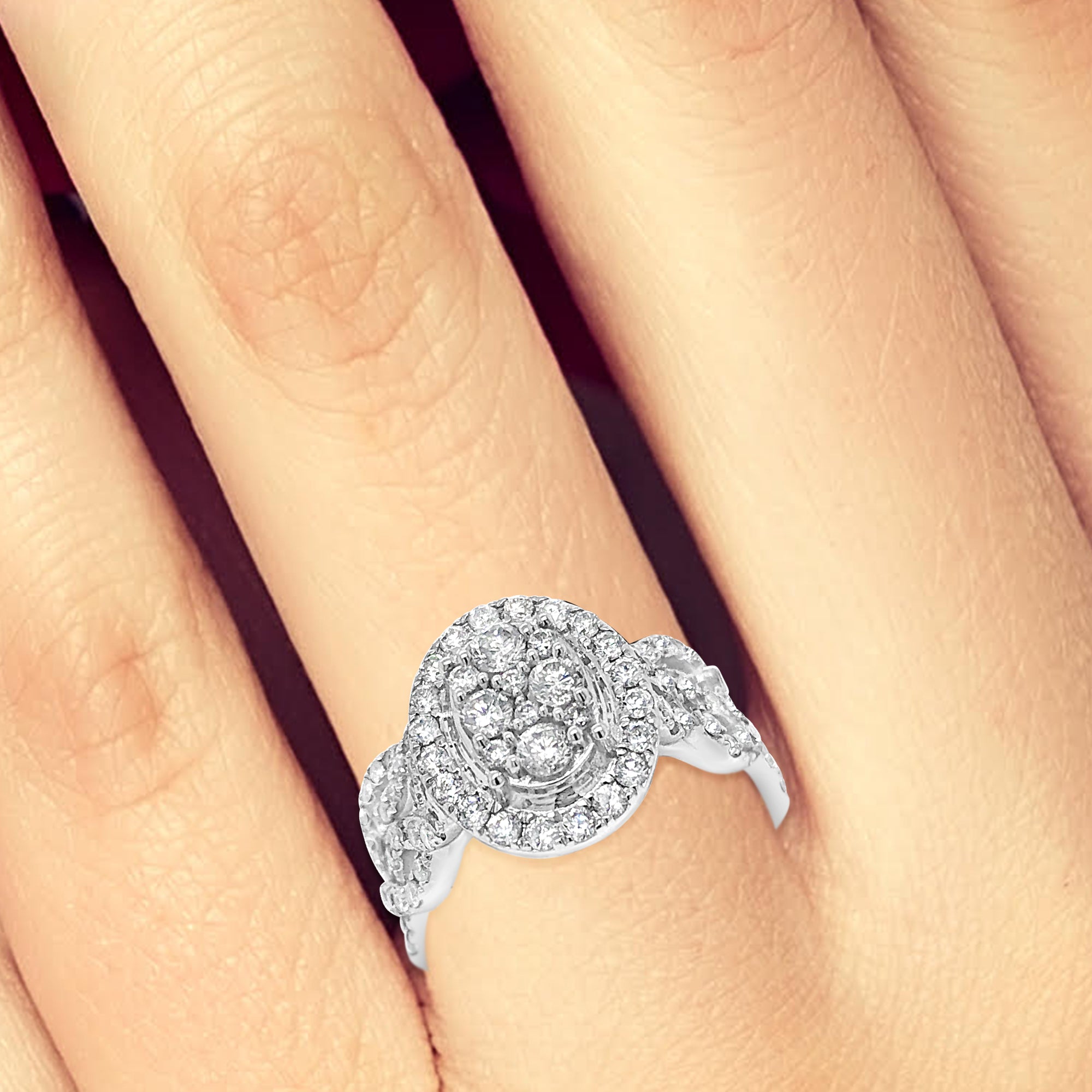 Diamond Halo Engagement Ring 1.25 CTW Round Cut 14K White Gold