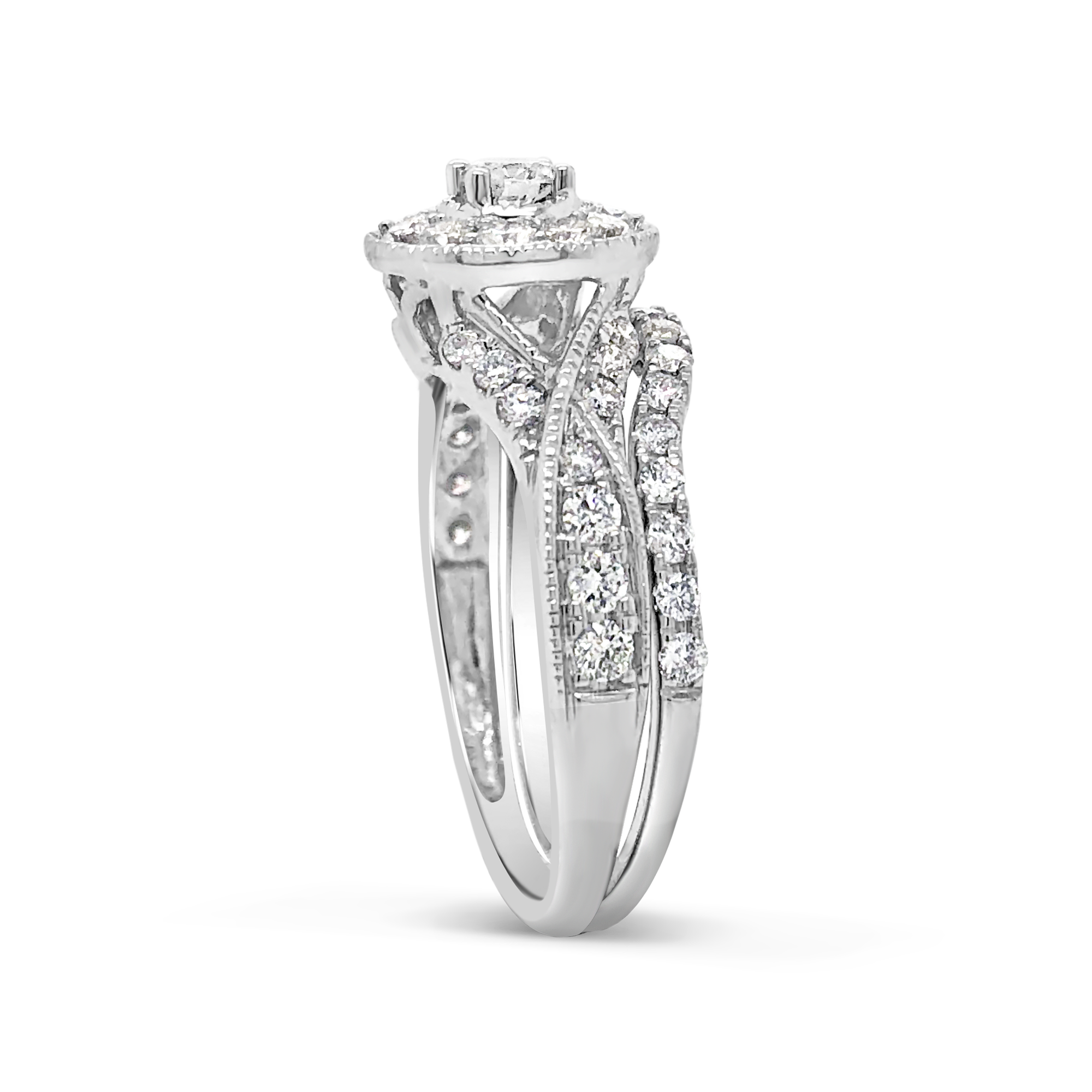 Diamond Halo Engagement Ring 1.5 CTW Round Cut 14K White Gold