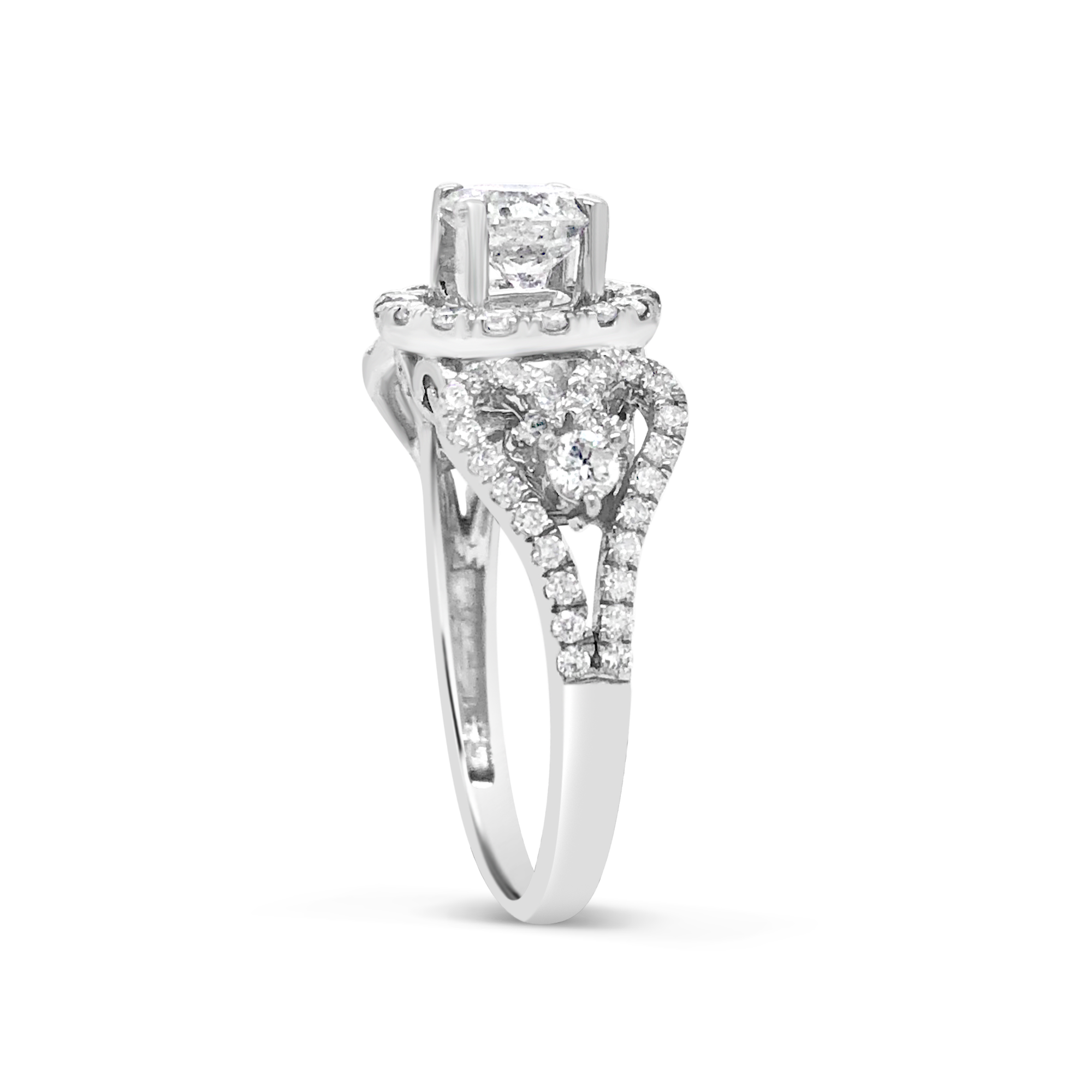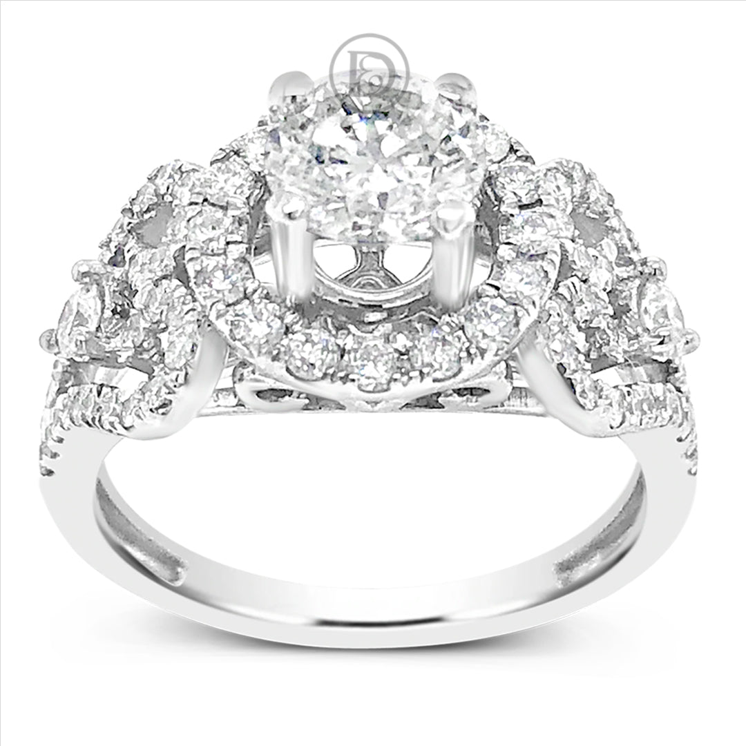 Diamond Halo Engagement Ring 1.70 CTW Round Cut 18K White Gold
