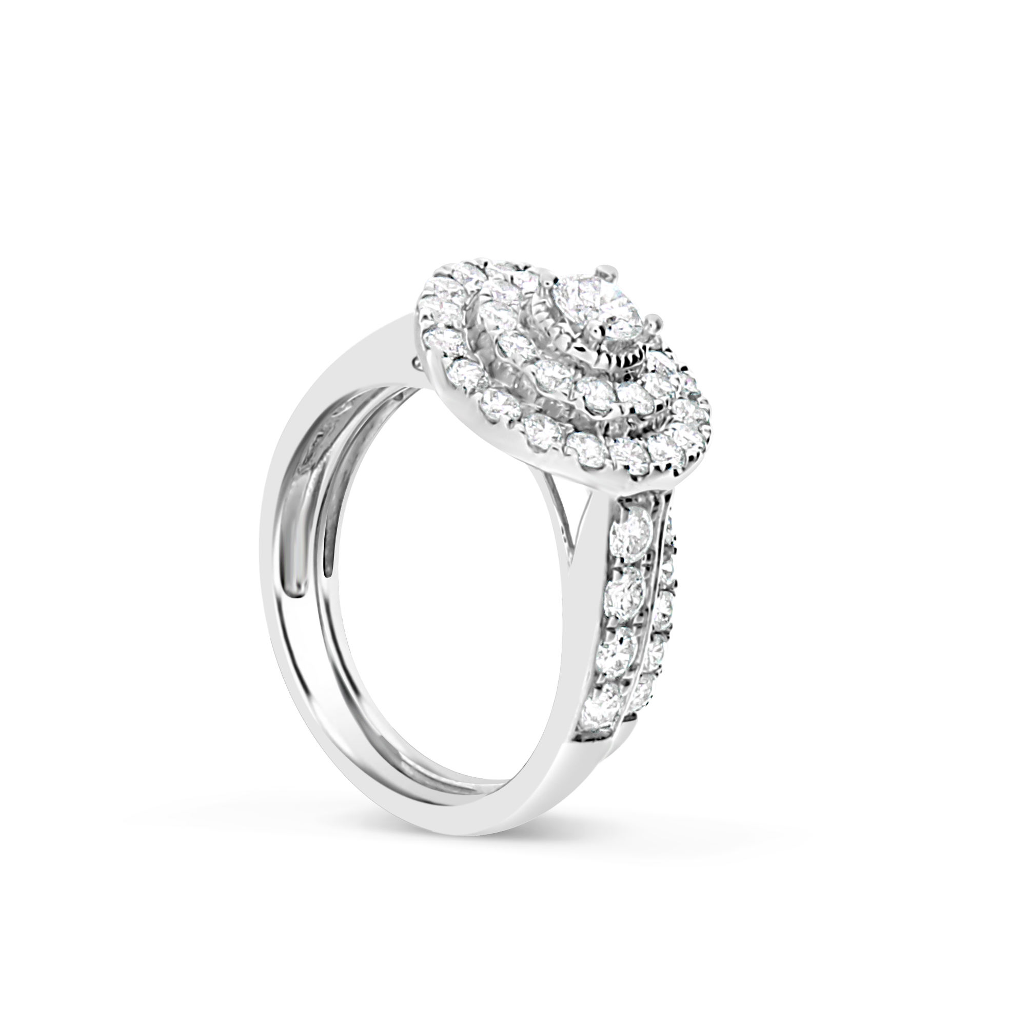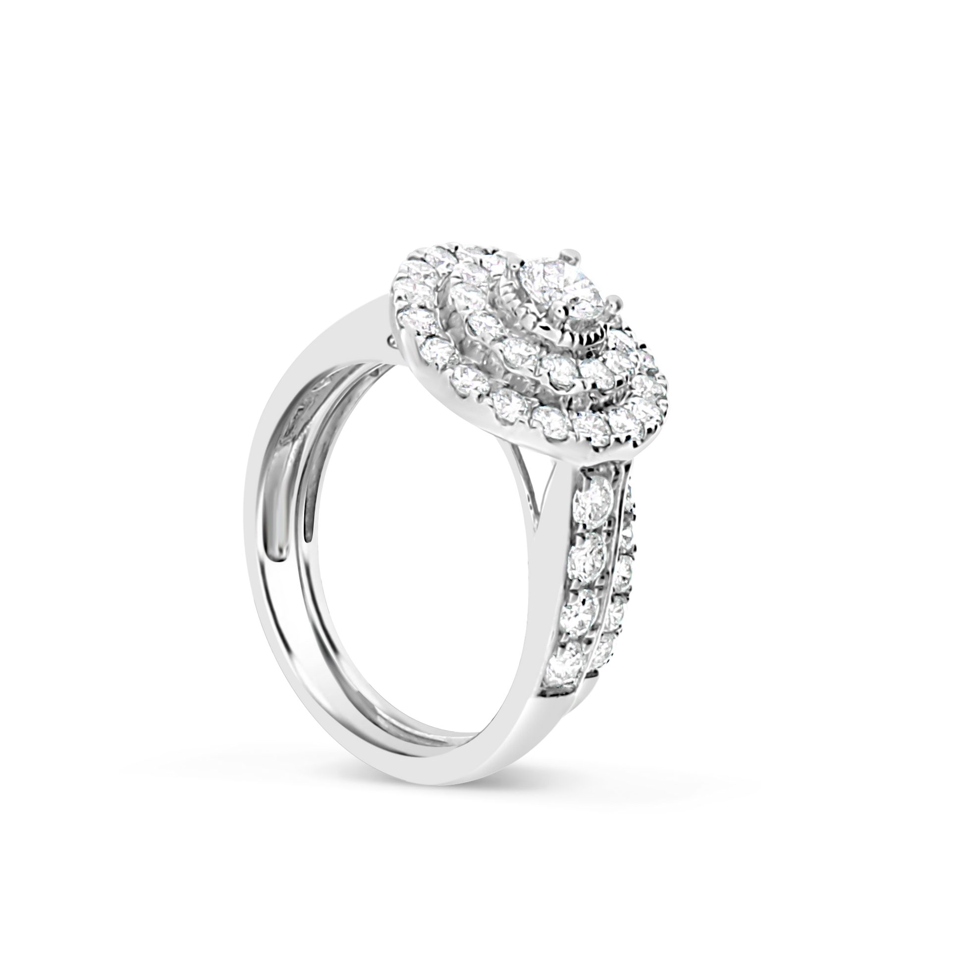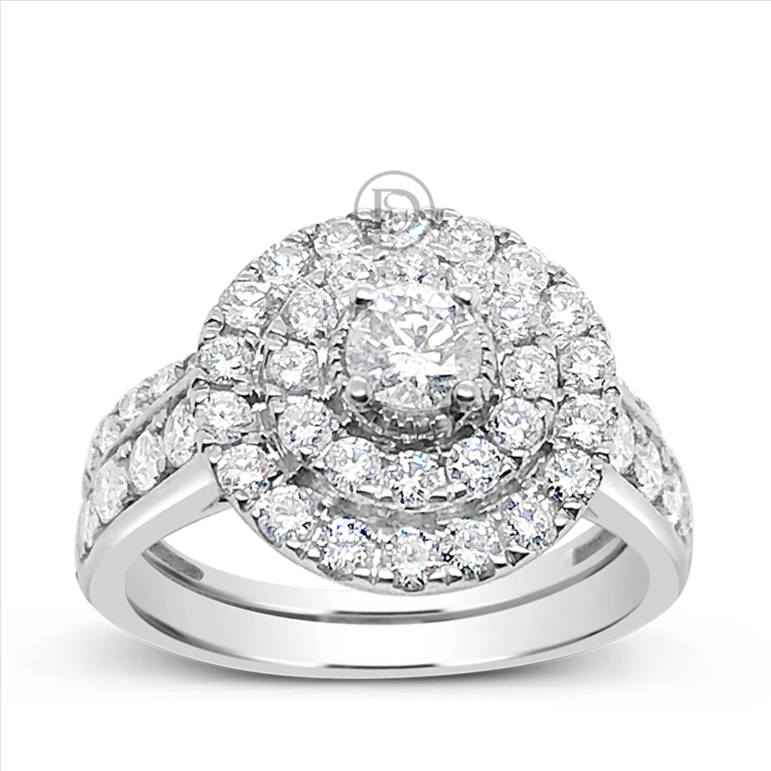 Diamond Halo Engagement Ring 1.75 CTW Round Cut 14K White Gold