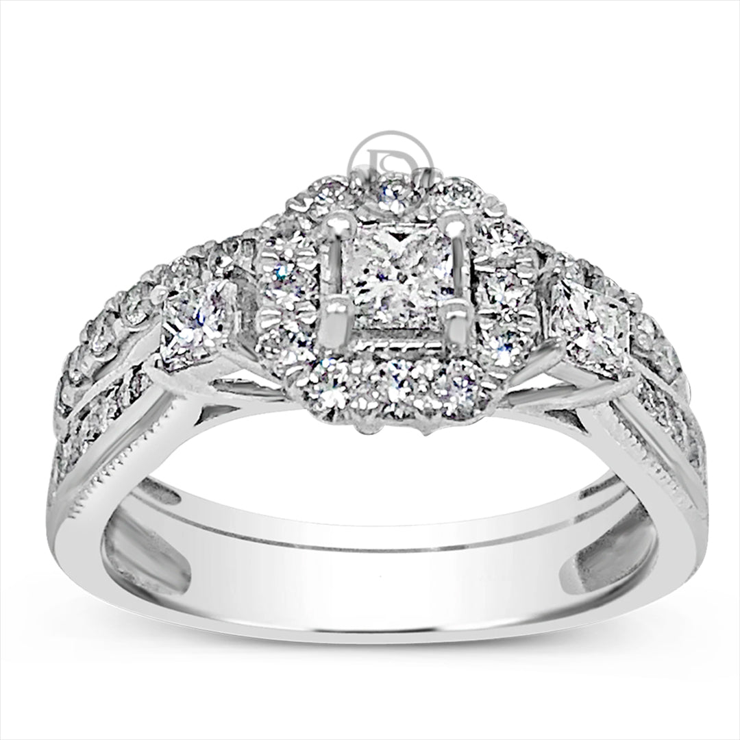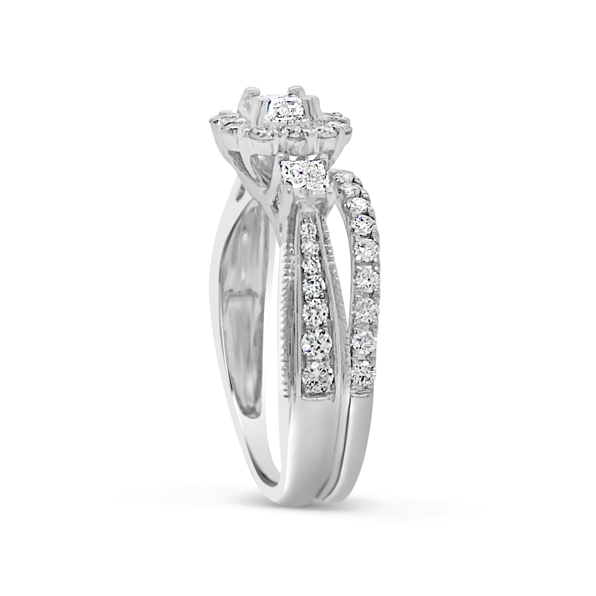 Capture the essence of true love with this stunning Diamond Halo Engagement Ring. The magnificent 1 CTW princess-cut diamonds at the center are a true wonder of nature, exuding the radiance that will leave you breathless. Crafted from the finest 14K white gold, this Diamond Halo Engagement Ring is a true masterpiece of artistry and craftsmanship.