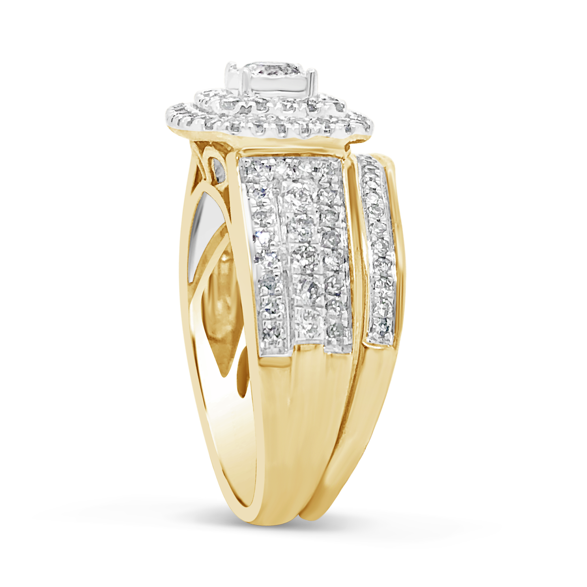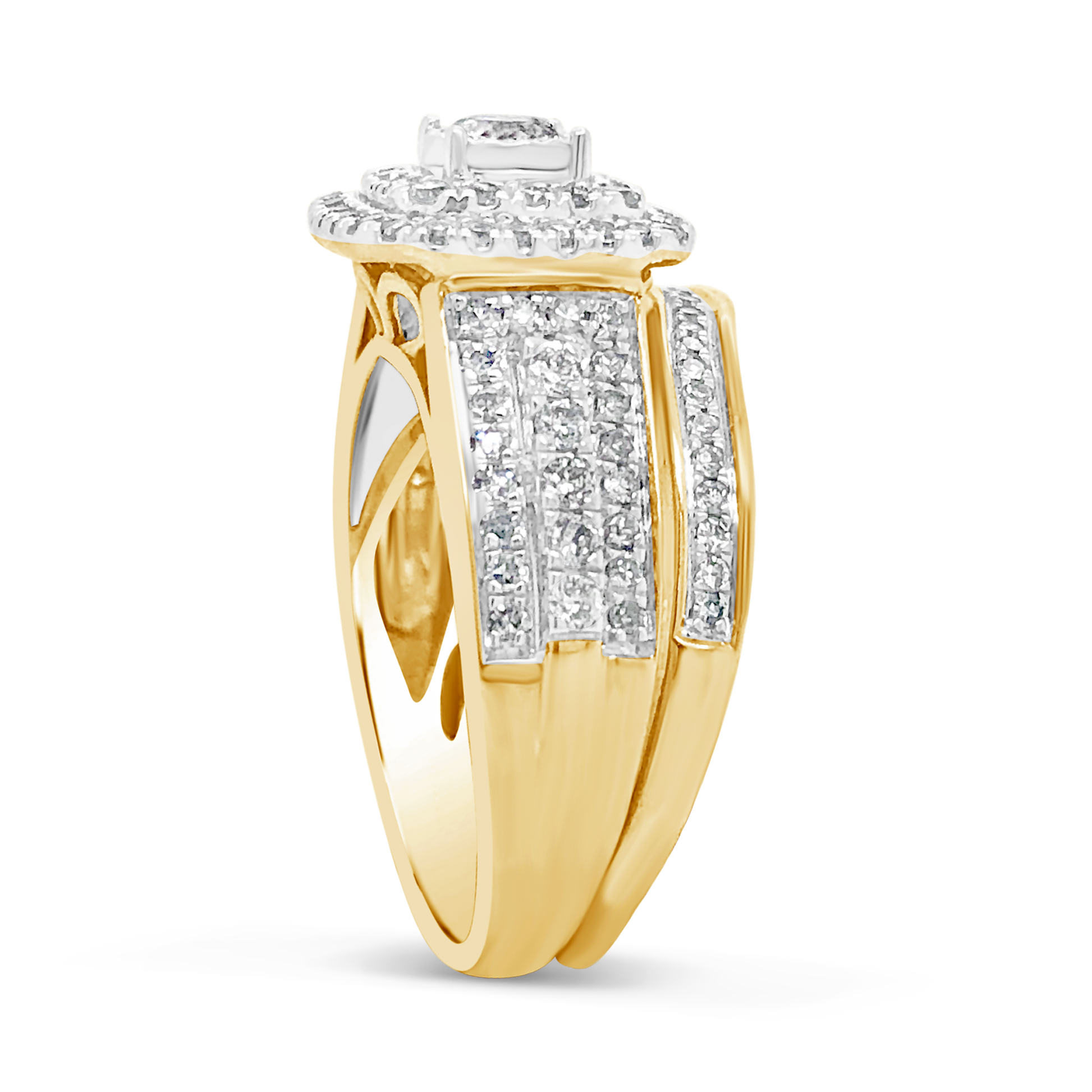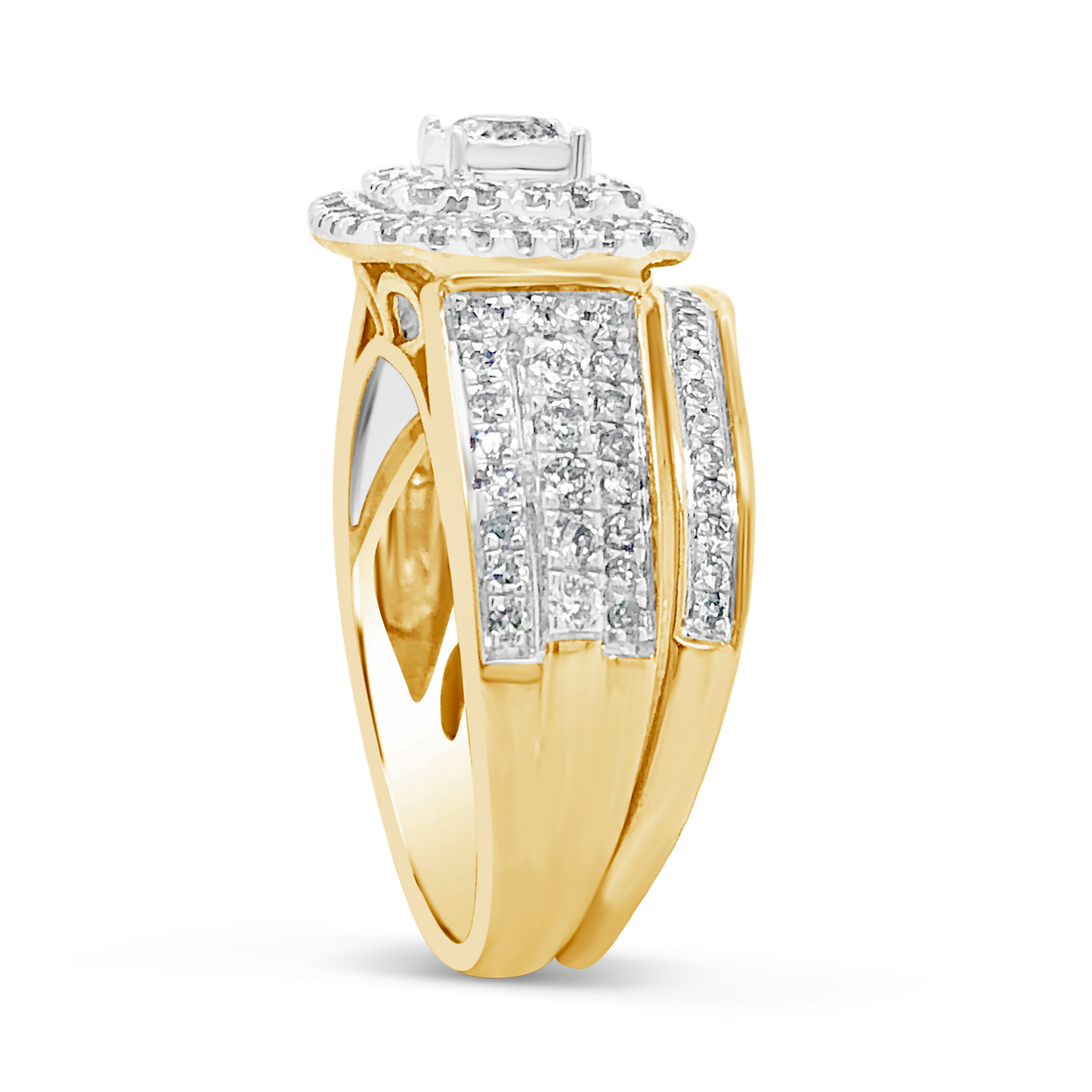 Diamond Halo Engagement Ring 1 CTW Round Cut 14K Yellow Gold