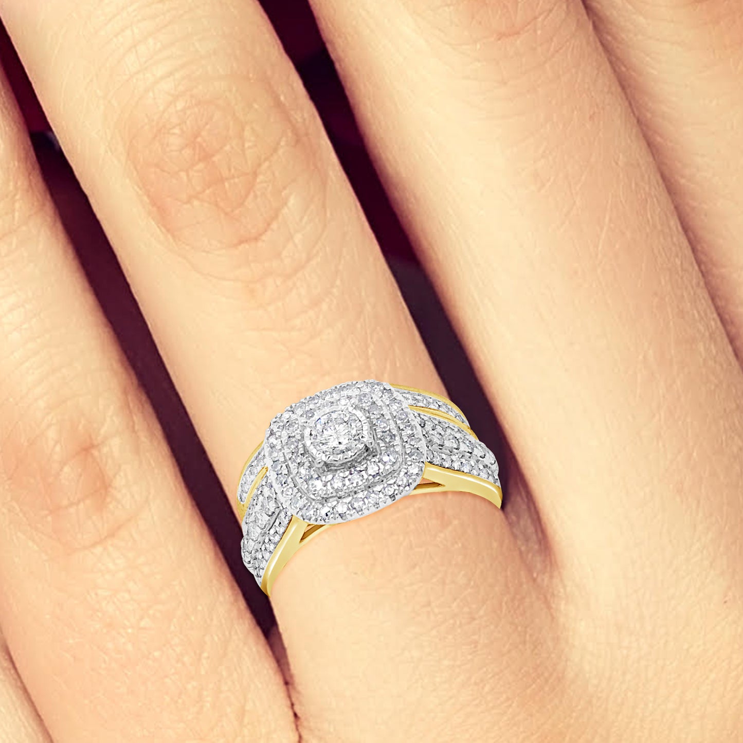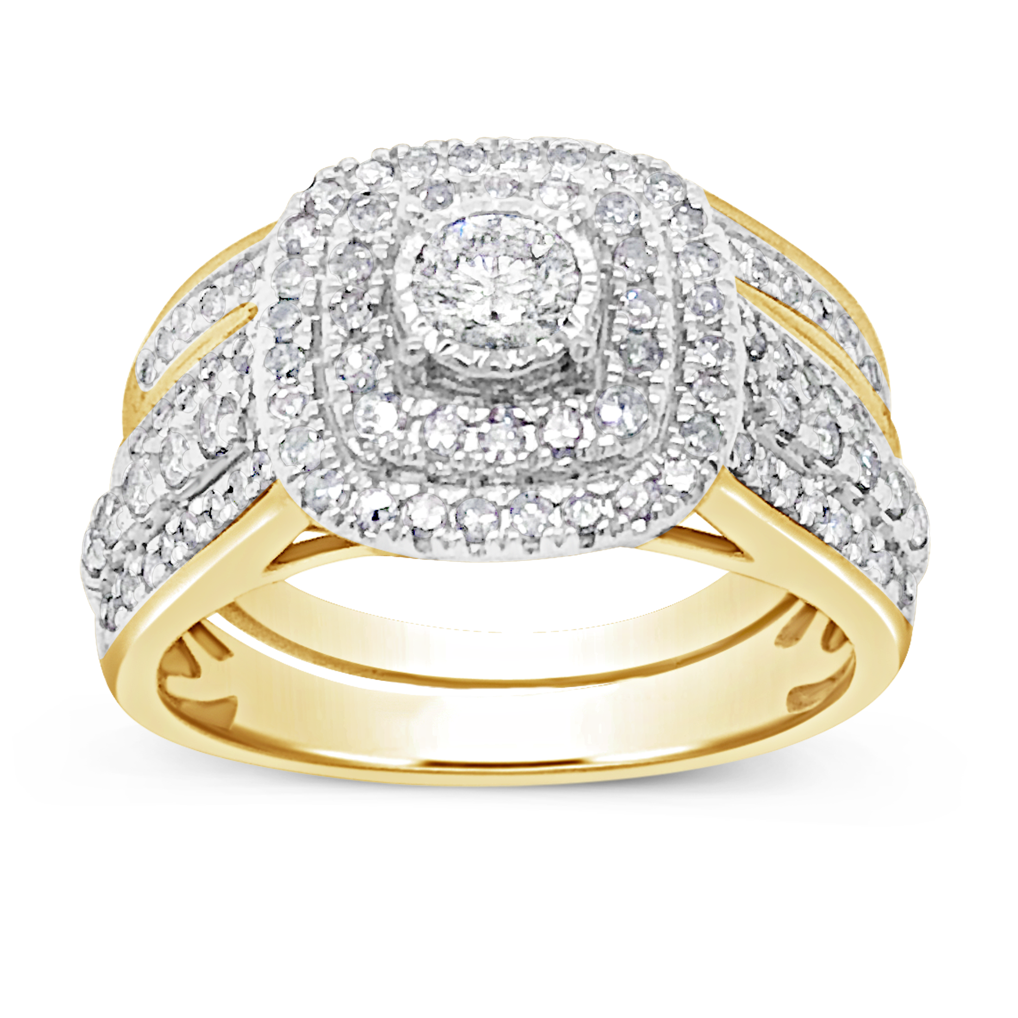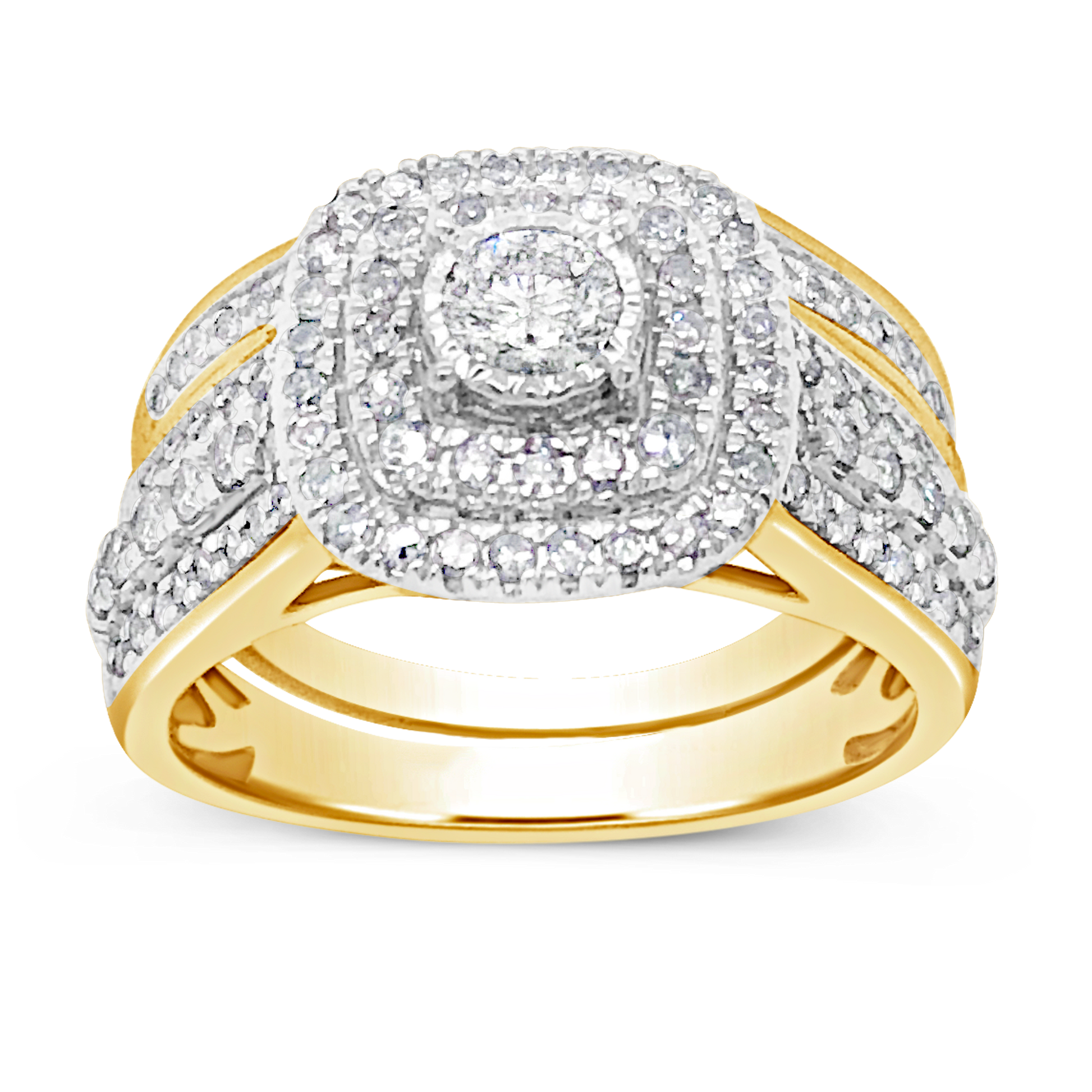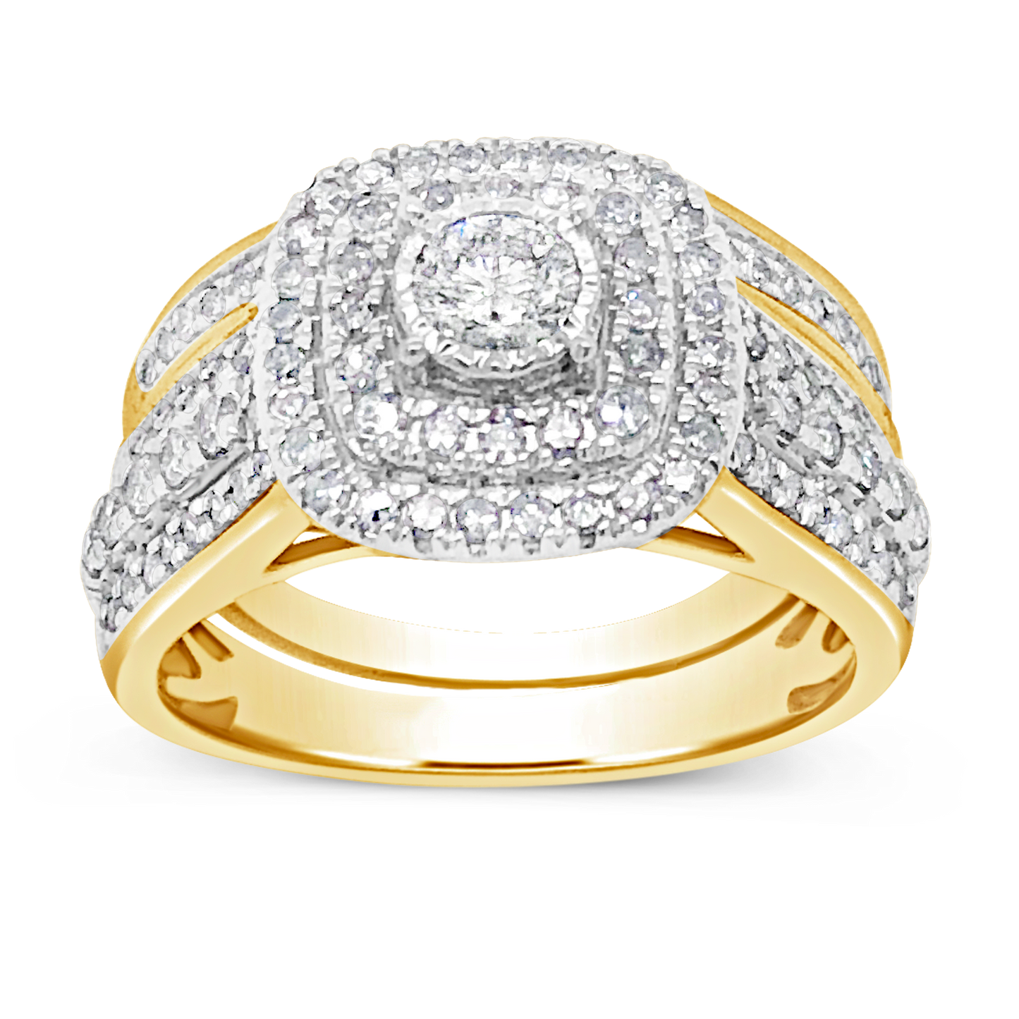 Diamond Halo Engagement Ring 1 CTW Round Cut 14K Yellow Gold