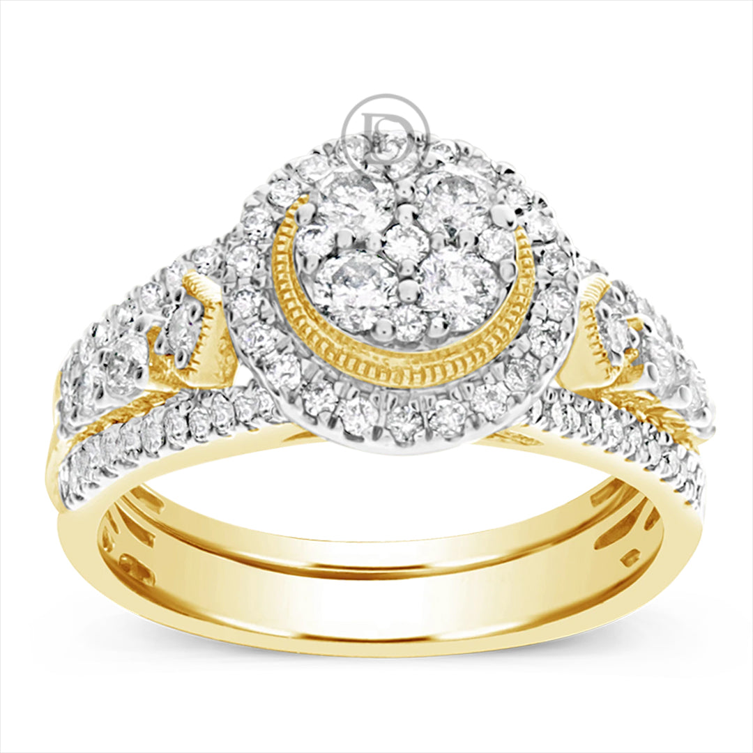 Diamond Halo Engagement Ring 1 CTW Round Cut 14K Yellow Gold