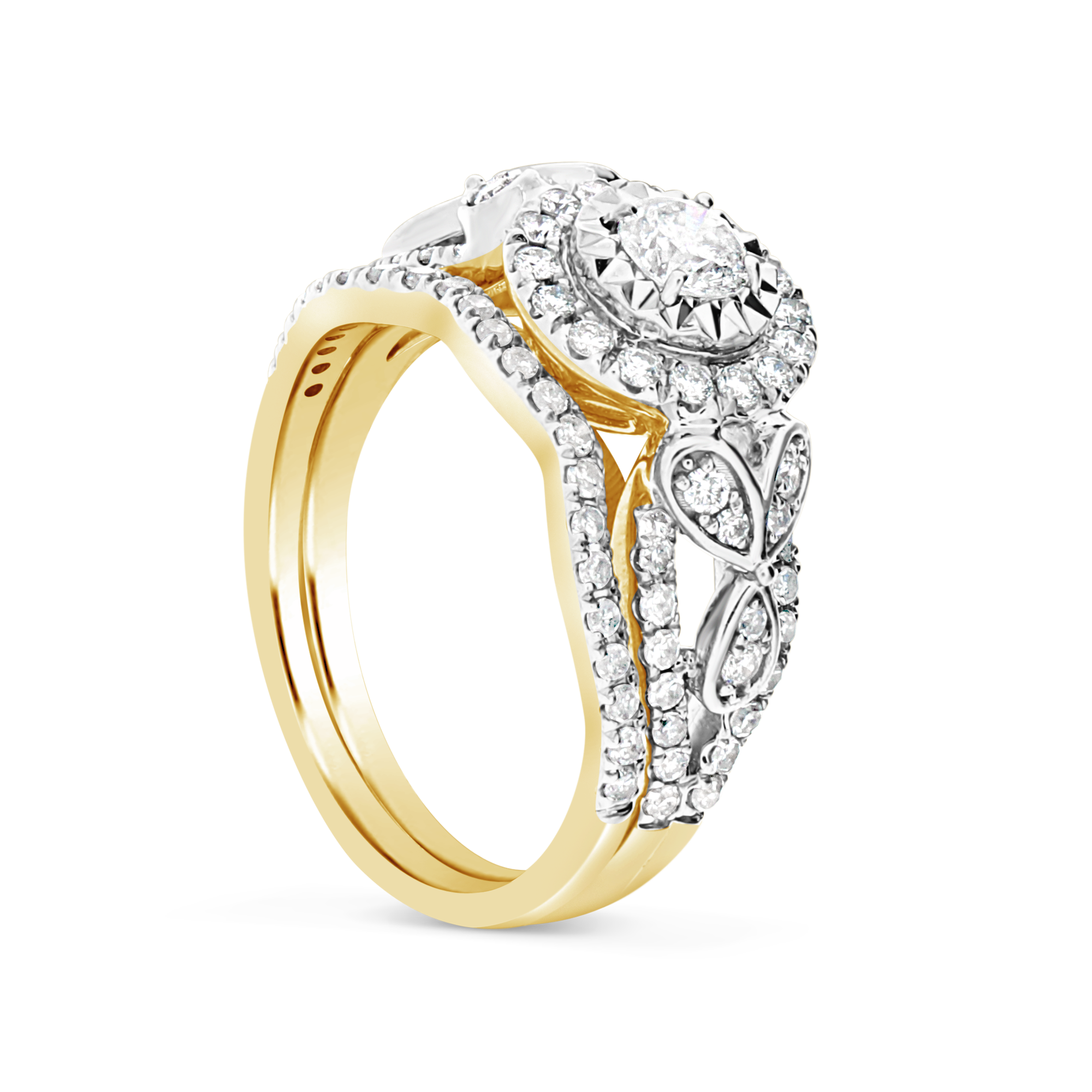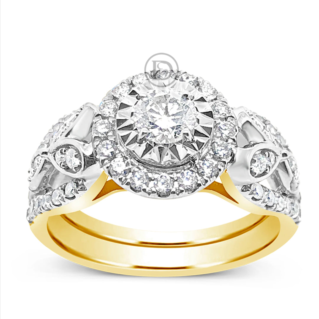 Diamond Halo Engagement Ring 1 CTW Round Cut 14K Yellow Gold