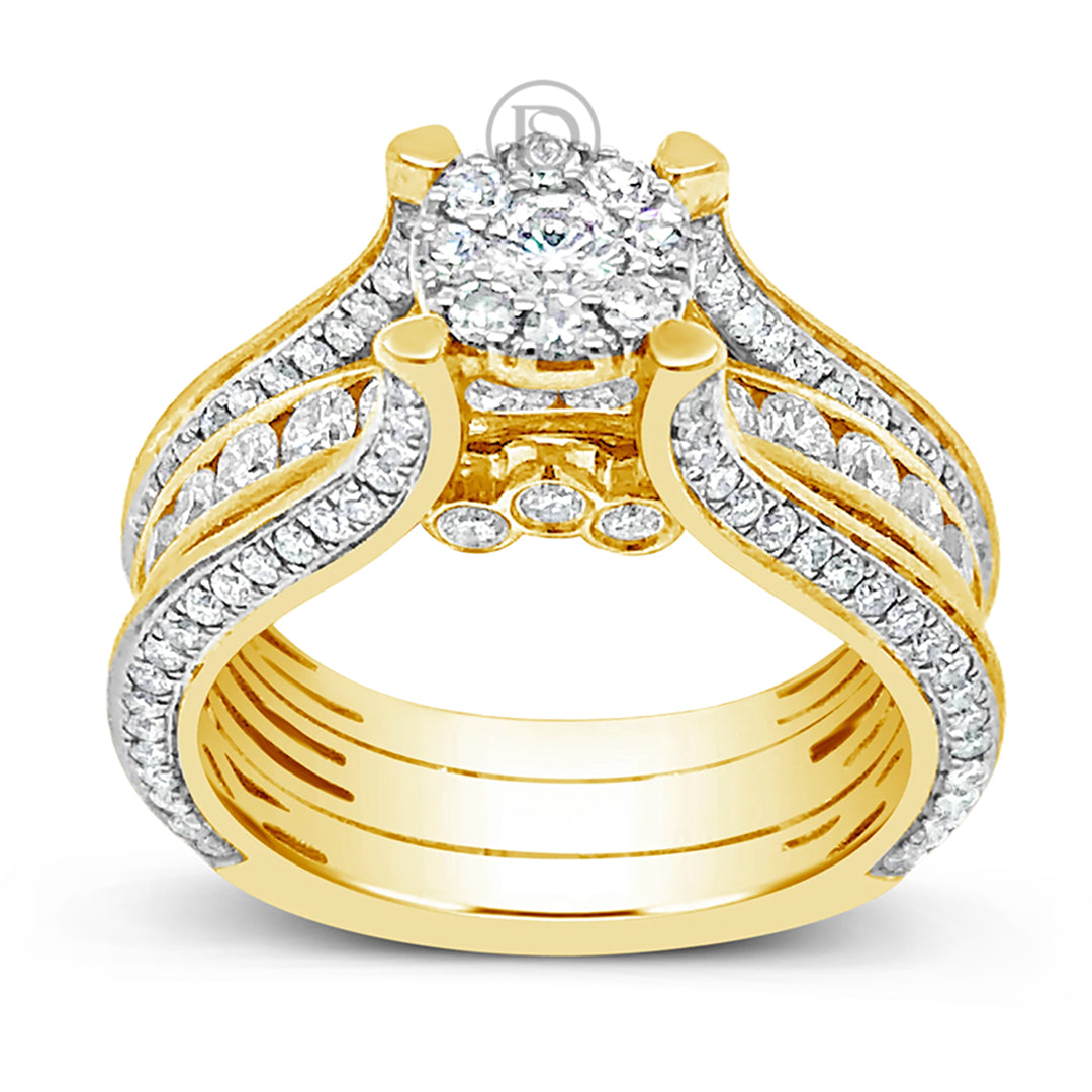 Diamond Halo Engagement Ring 2.16 CTW Round Cut 14K Yellow Gold