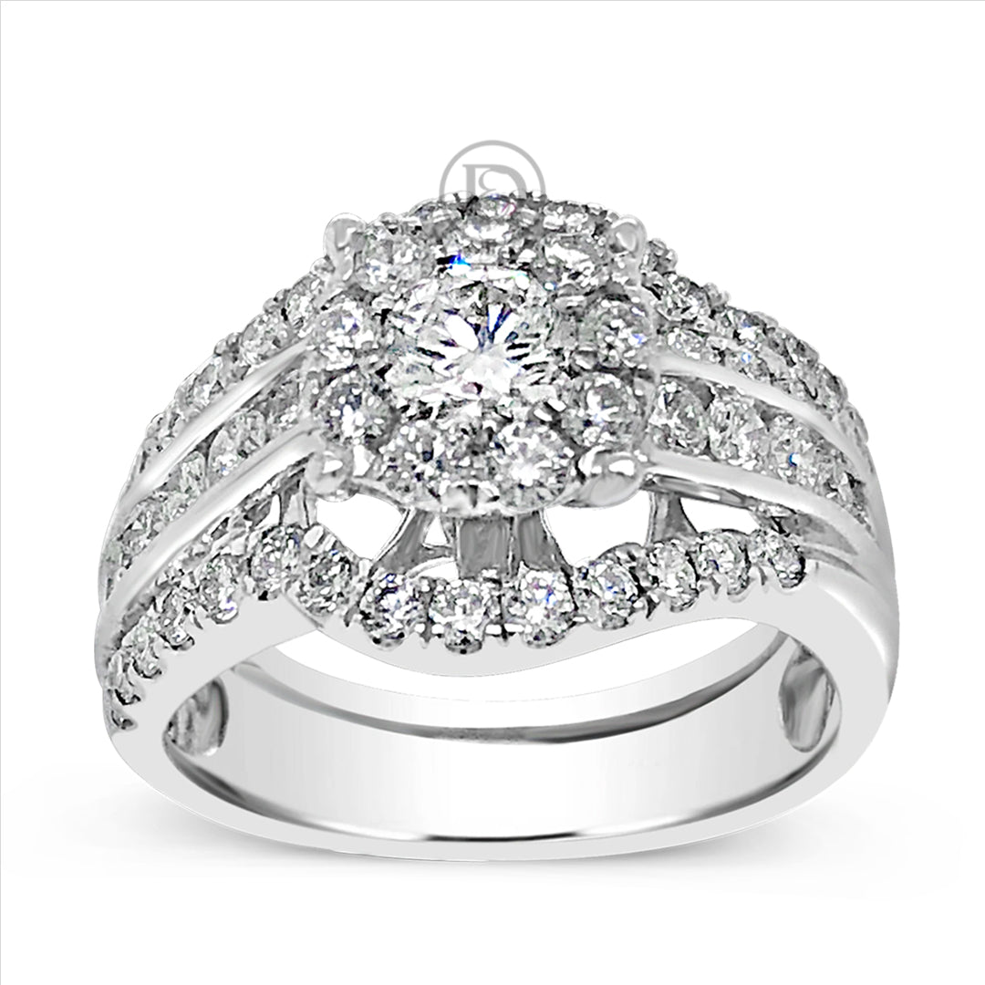 Diamond Halo Engagement Ring 2.31 CTW Round Cut 14K White Gold