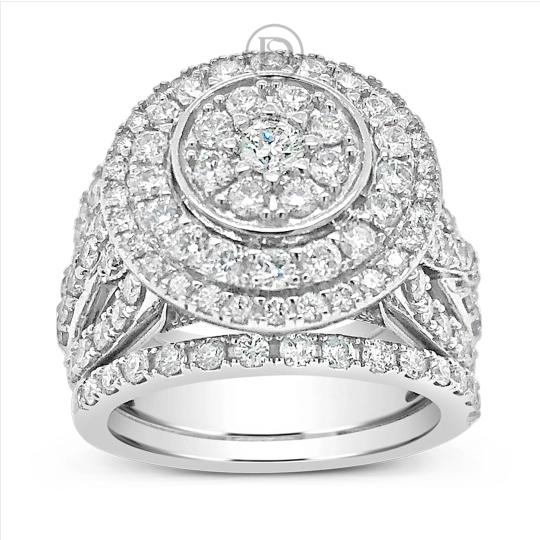 Diamond Halo Engagement Ring 2.50 CTW Round Cut 14K White Gold