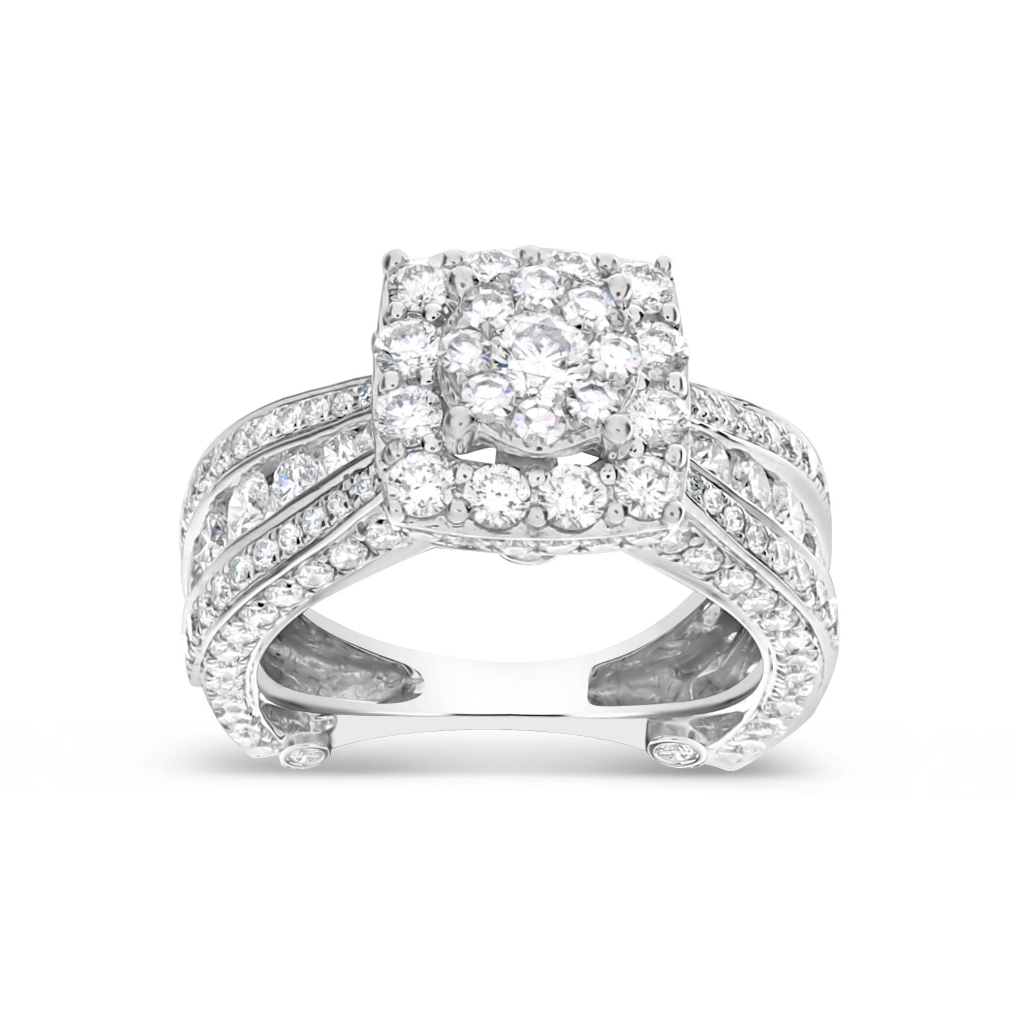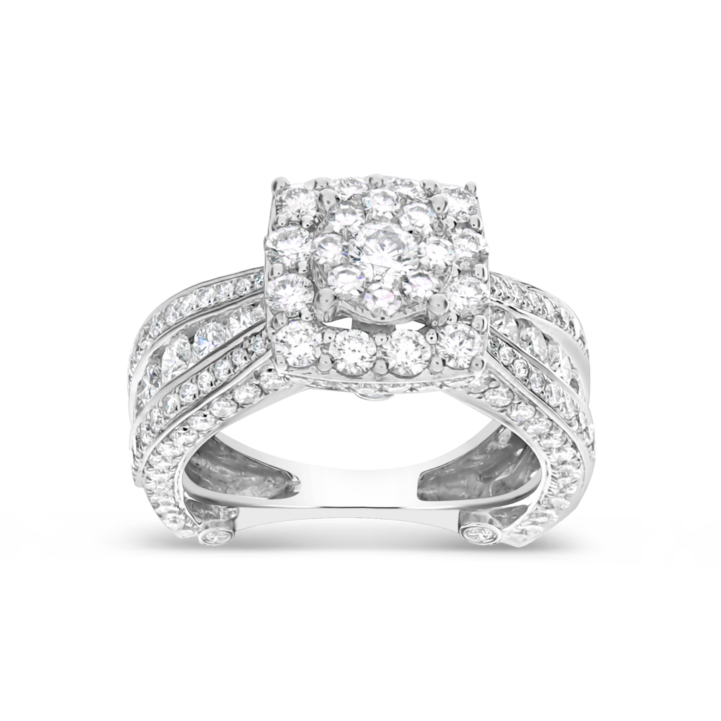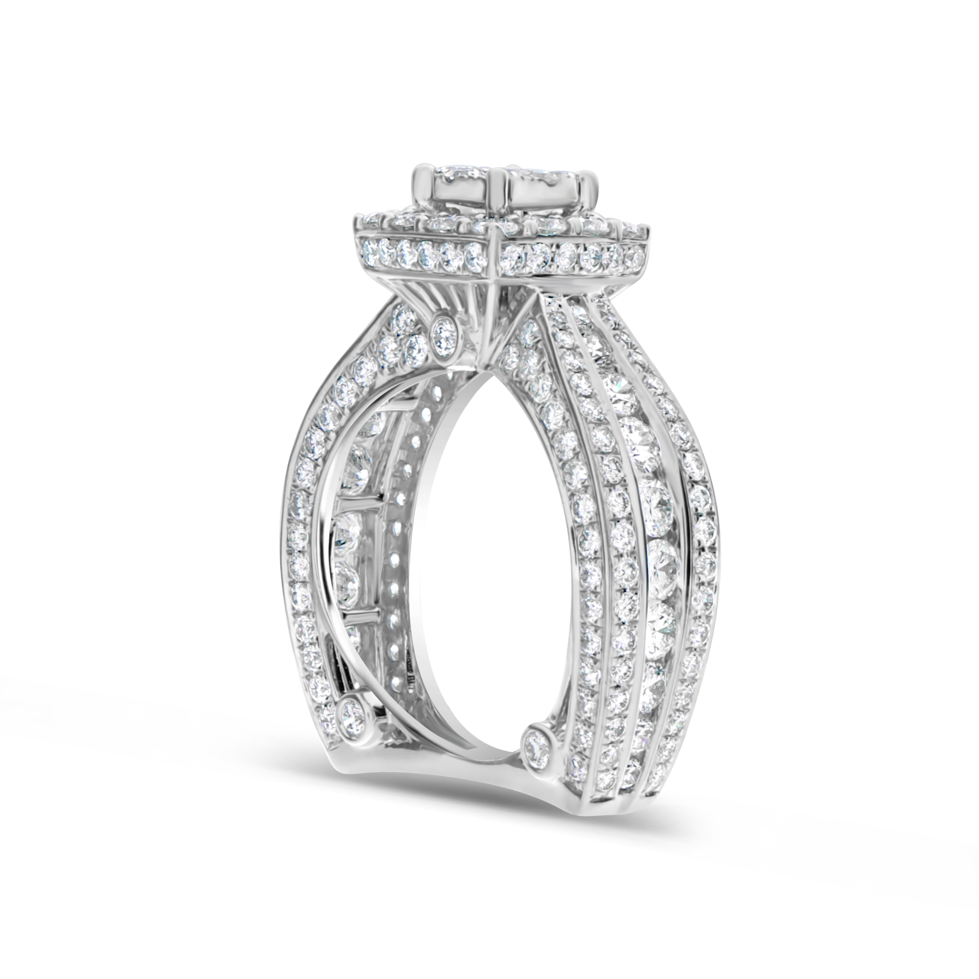 The focal point of this ring is the 3.60-carat total weight of round-cut diamonds, carefully selected for their exceptional beauty and quality. The diamonds are arranged in a halo design that accentuates their natural brilliance, adding a touch of luxury and sophistication to the ring. Show her that your love is everlasting with this magnificent ring.