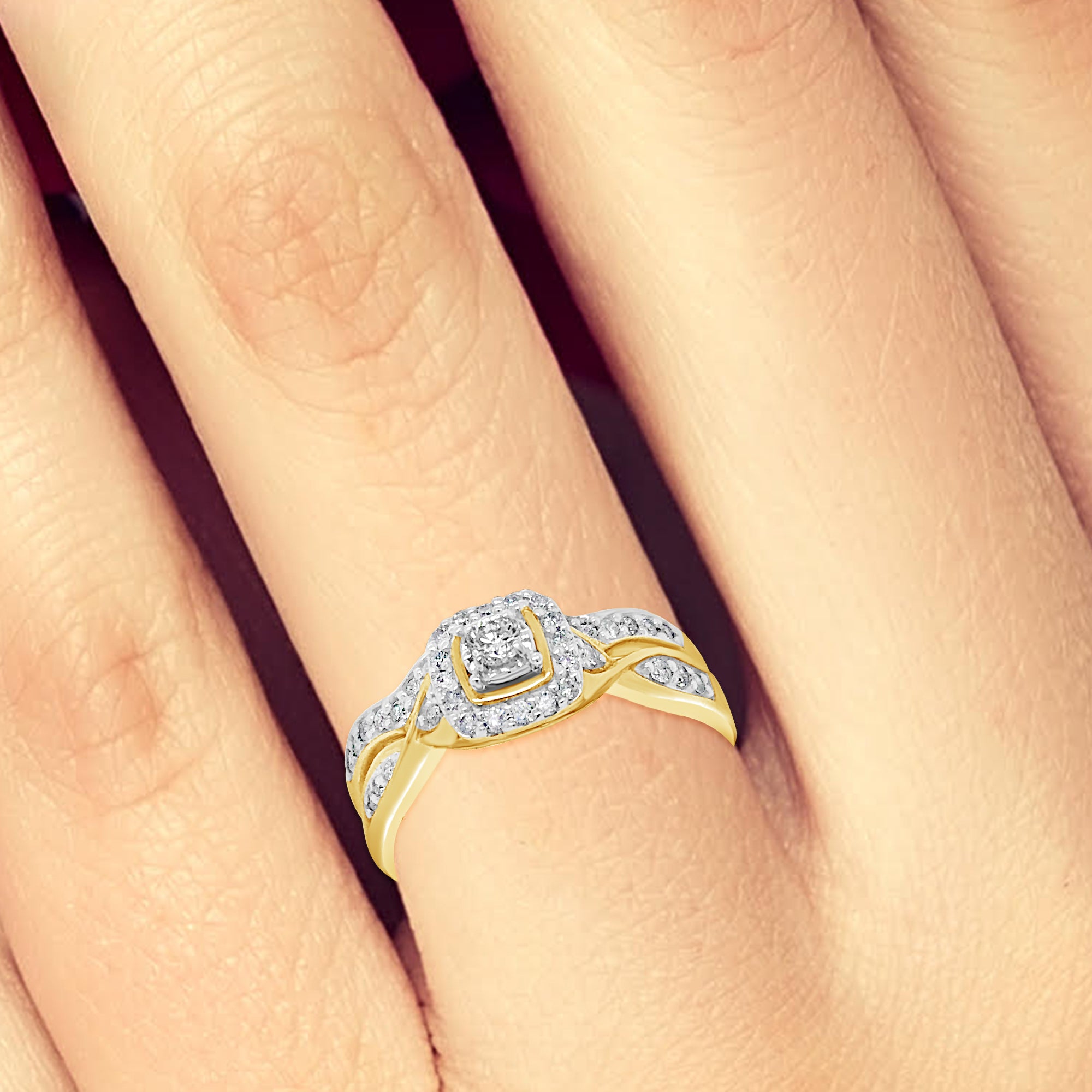 Diamond Halo Engagement Ring .40 CTW Round Cut 14K yellow Gold