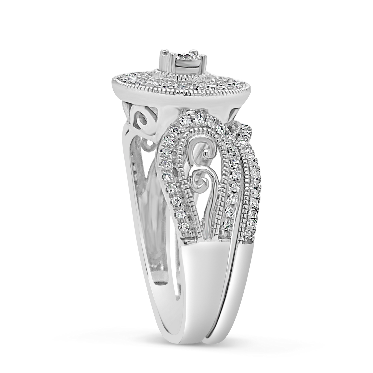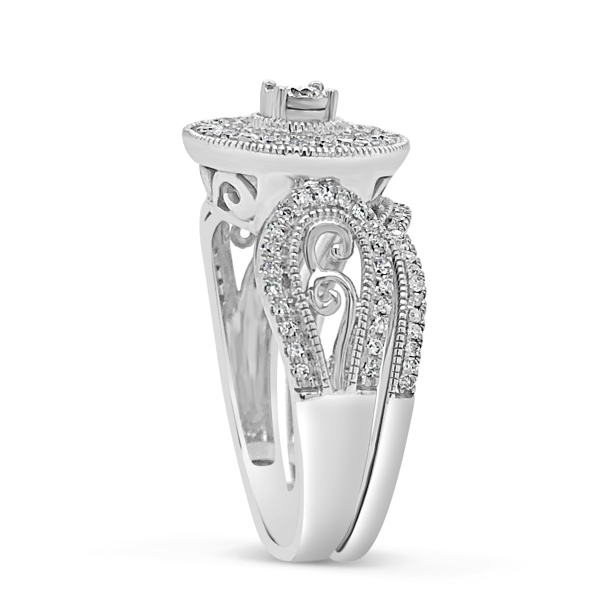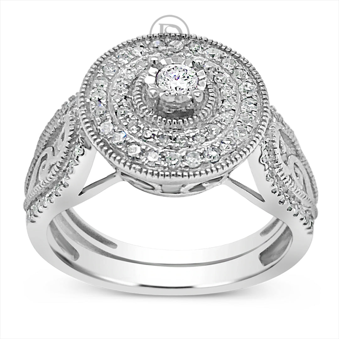 Diamond Halo Engagement Ring .50 CTW 10K White Gold Bridal Set