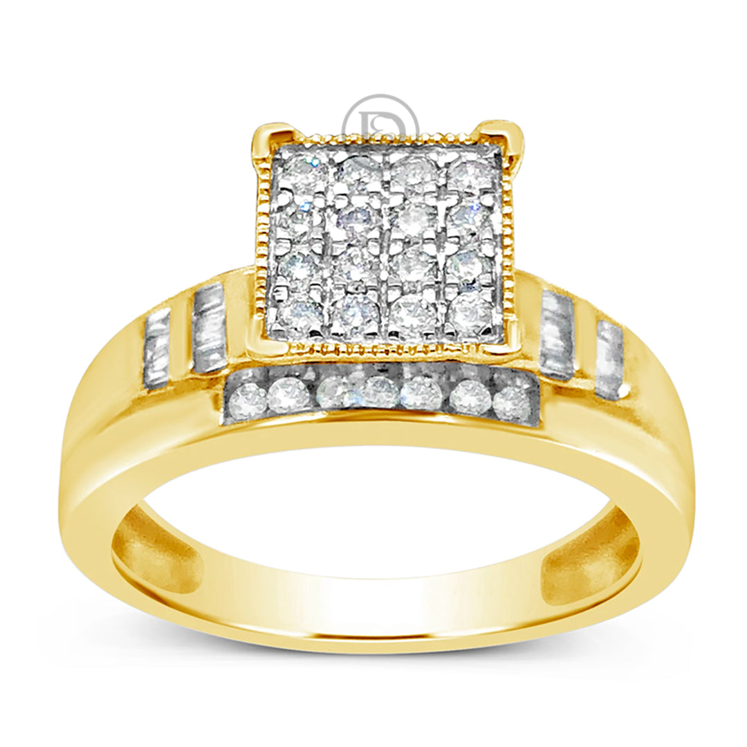 Seal your love with the breathtaking Diamond Halo Engagement Ring Bridal Set, crafted from 10K yellow gold. This stunning bridal set is a symbol of your love and affection, with .50 CTW diamond center stones that sparkle with brilliant radiance. The intricate design of the Diamond Halo Engagement Ring Bridal Set features a unique blend of contemporary and vintage-inspired elements. The diamond-studded band and halo setting complement the classic and timeless appeal of the 10K yellow gold, creating an exquisite piece of jewelry that is both elegant and versatile. The high-quality materials and meticulous attention to detail ensure that this bridal set will be treasured for a lifetime, serving as a cherished family heirloom.