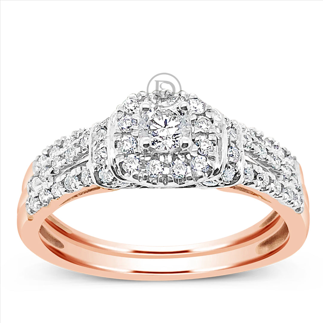 Diamond Halo Engagement Ring .50 CTW Round Cut Rose Gold