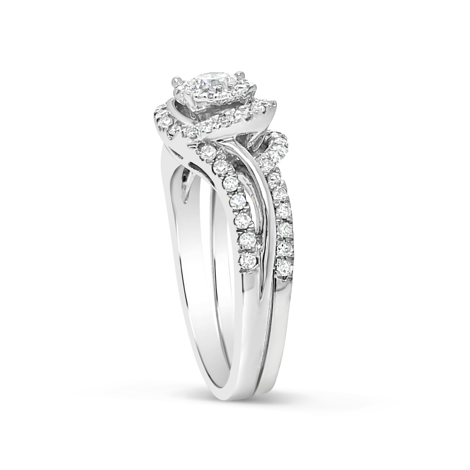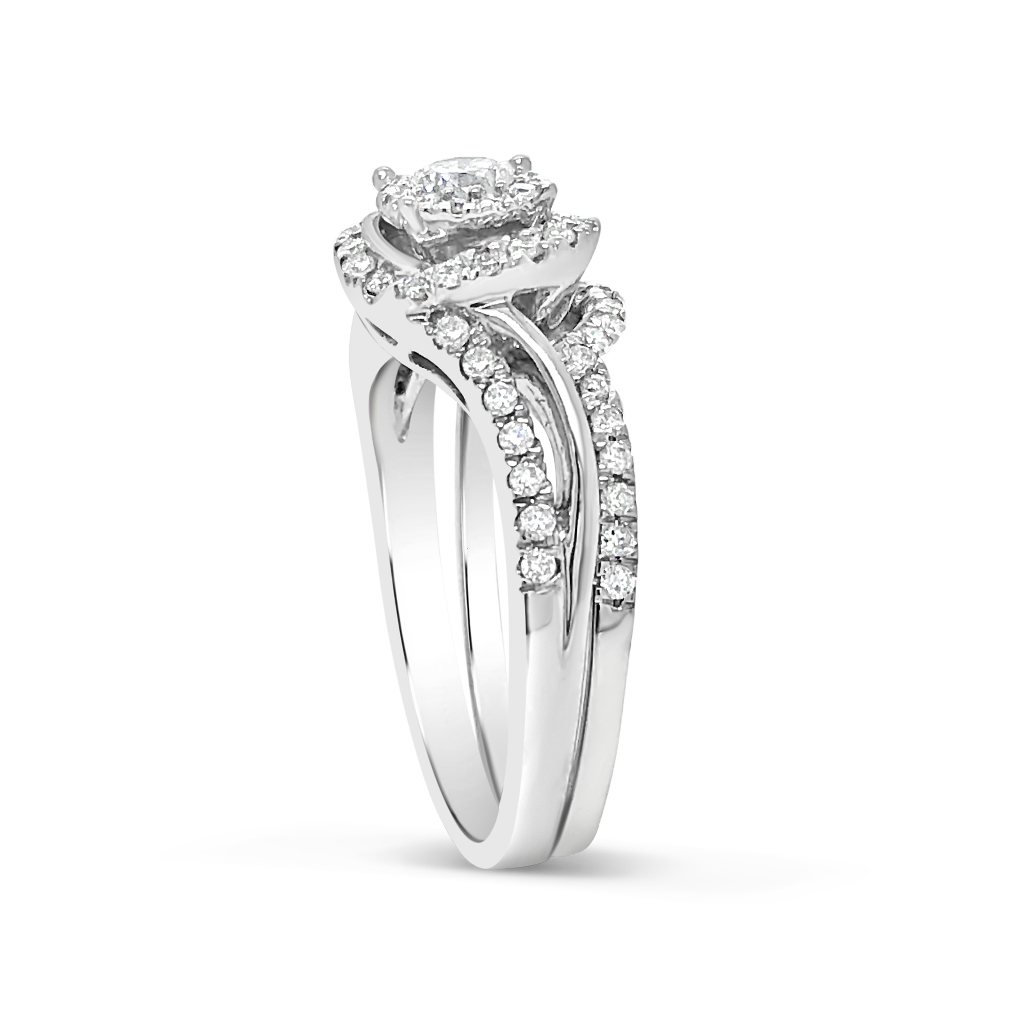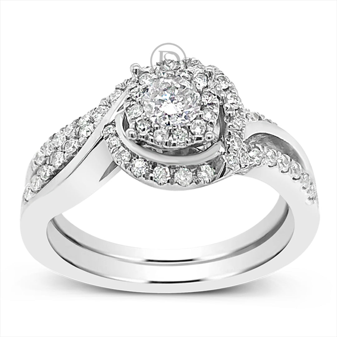 Diamond Halo Engagement Ring .55 CTW Round Cut 14K White Gold