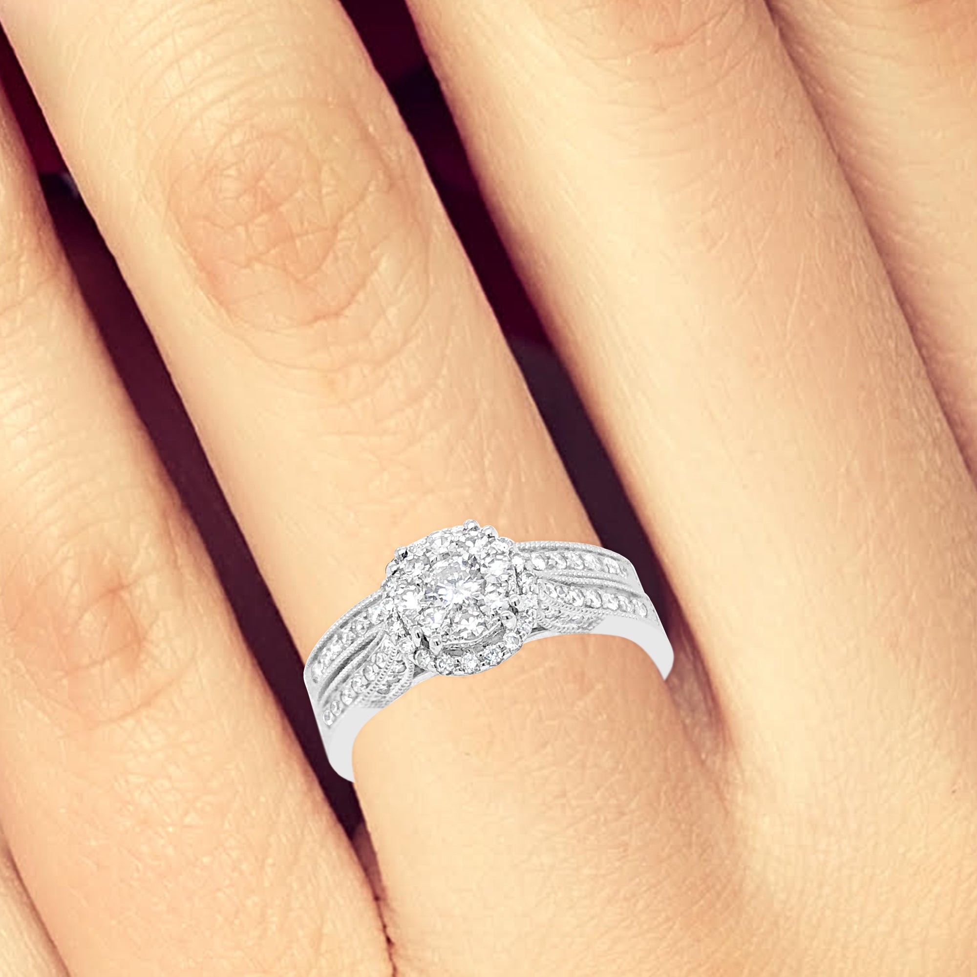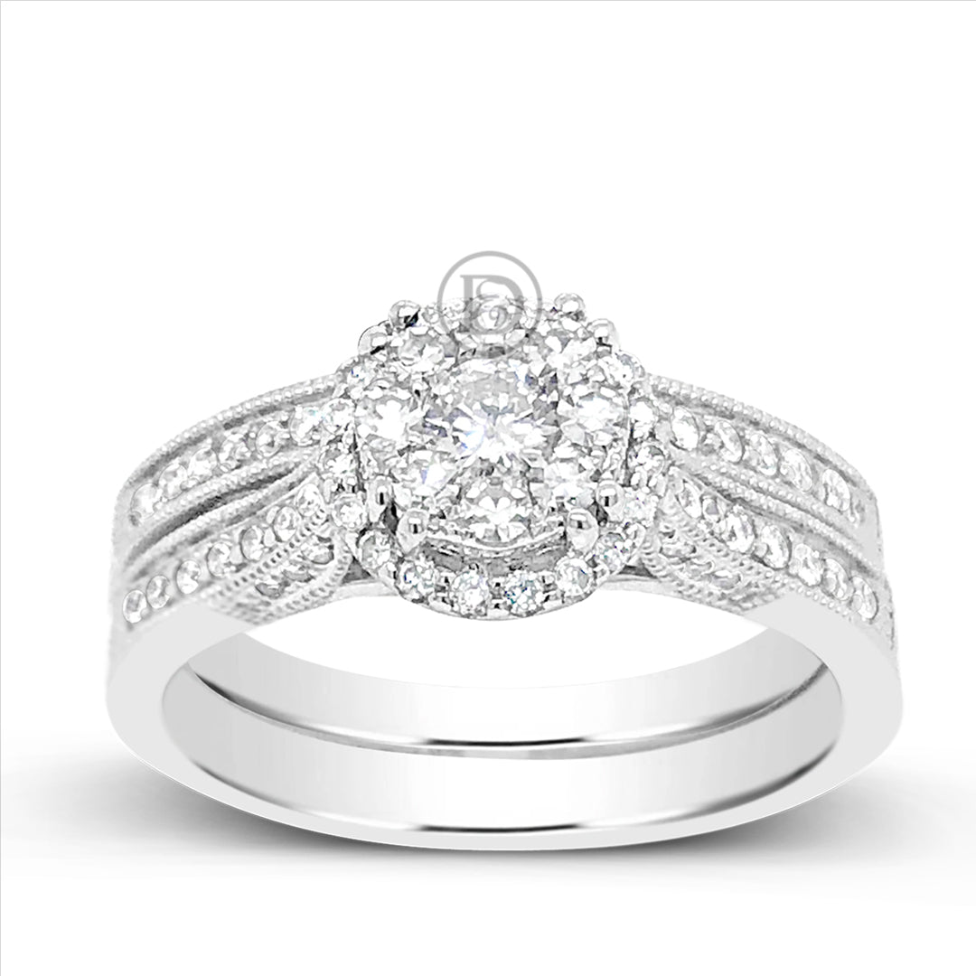 Diamond Halo Engagement Ring .62 CTW Round Cut 14K White Gold